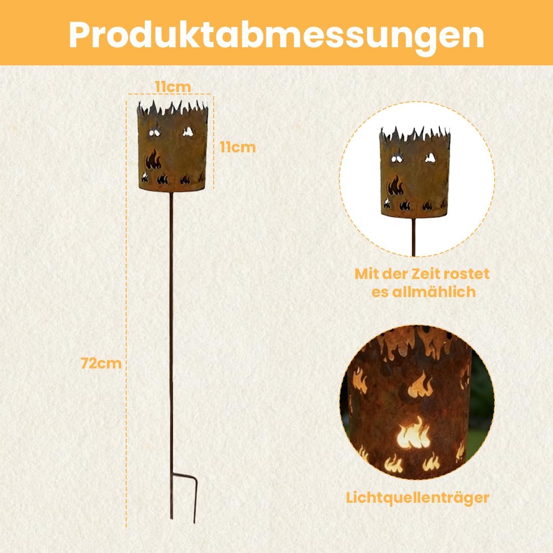 Product description: 1. This garden torch has a striking design that adds a touch of brightness to your garden or patio and illuminates the entire area. It is particularly eye-catching for parties and celebrations, as the flame creates a romantic atmosphere. Product Information: Material: Iron Dimensions: 72 x 11 x 11 cm Weight: 280g Contents: 1 x Garden Torch (without wick) Note: 1. Due to the light and different monitor settings, there may be a slight colour difference. Please refer to the actual item. 2. Product dimensions are measured manually and may vary slightly. Please refer to the actual item.