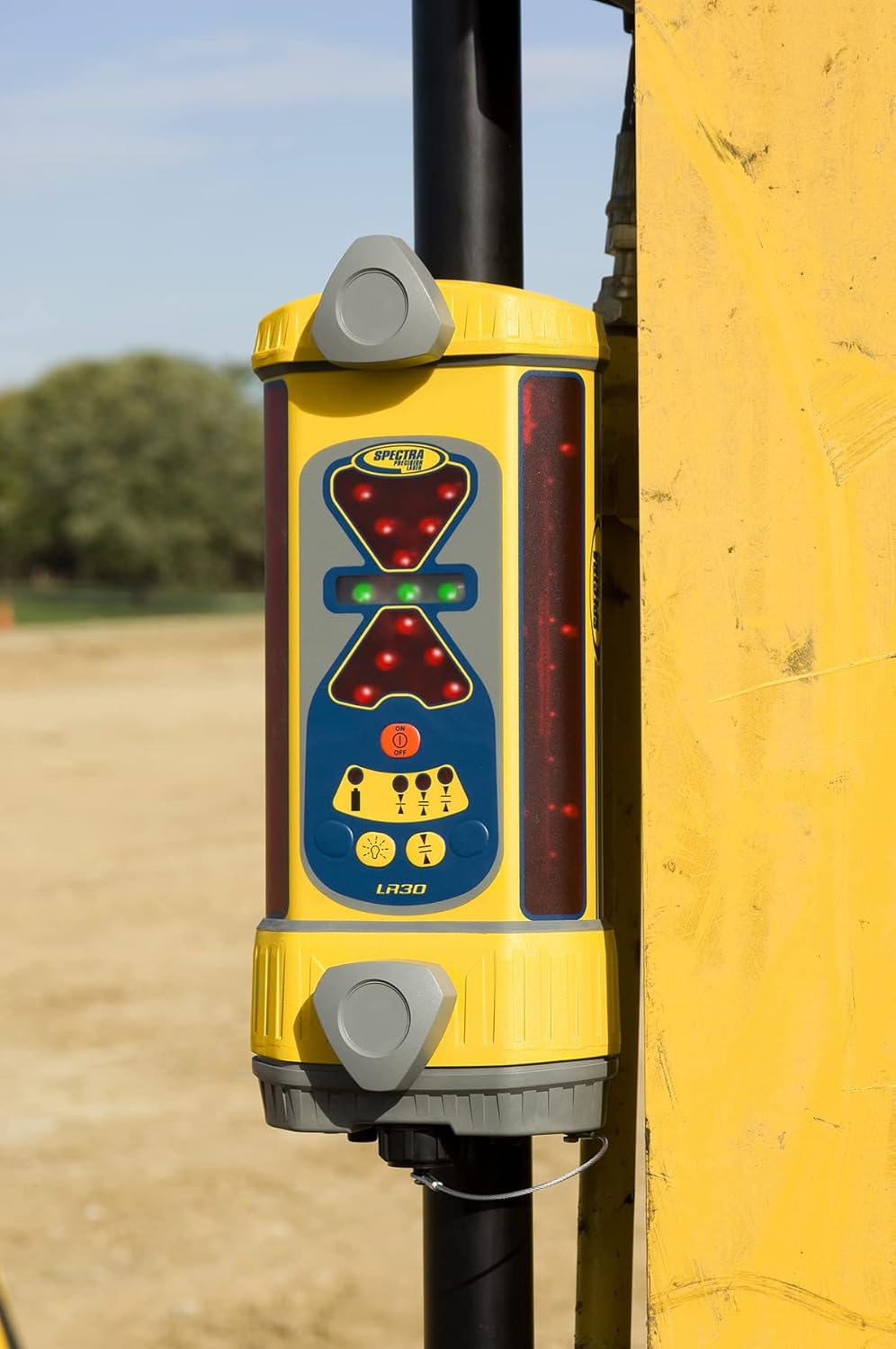 The Spectra Precision LR30W Wireless Laser Machine Display Receiver includes the LR30 Receiver with an internal radio, the RD20 Remote Display, NiMH battery, charger, and carrying case. It is designed to be used as a stand-alone display receiver on grading and excavating equipment, including dozers, backhoes, excavators, scrapers, skid steers, and levelers. The versatile, easy-to-use LR30 features 360-degree laser detection and works with all types of rotating lasers on all types of machinery for fast, no-hassle setup. As a laser receiver, it does not emit any laser light Rugged and waterproof, the LR30 receiver withstands all weather environments. Internal isolating shock mounts protect the electronics.