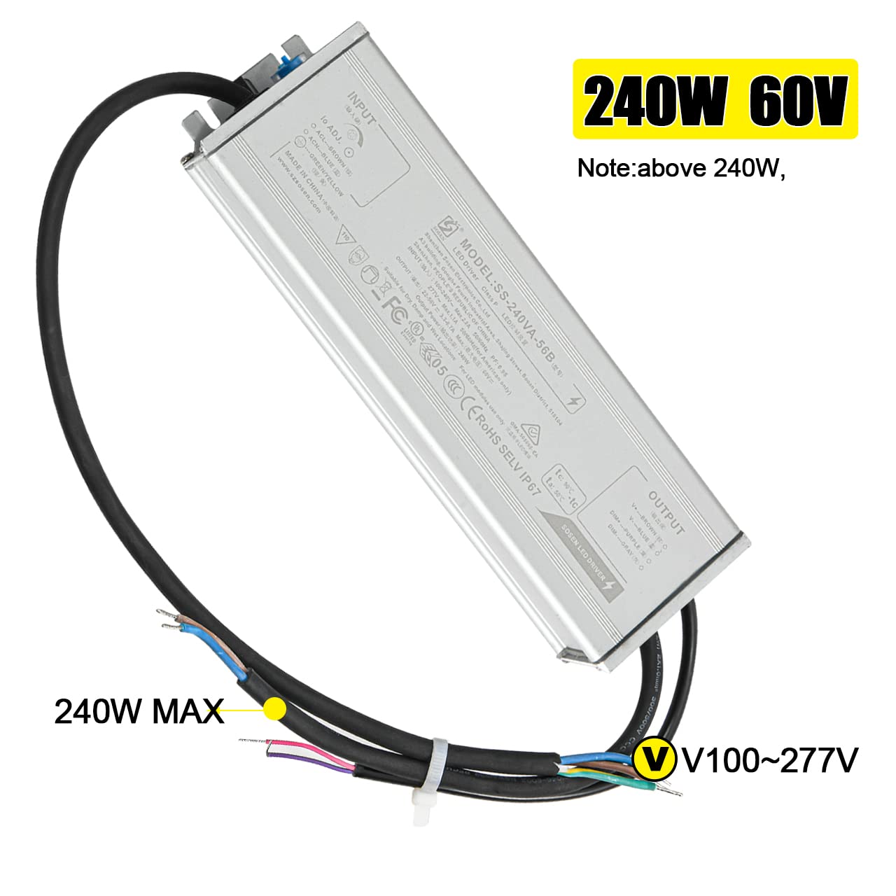 LED Driver SS-240VA-56B 240 Watts Waterproof IP67 Power Supply Transformer Adapter 100V-277V AC to 32-54V DC High Voltage Output for LED Canopy Light,Outdoor Light and Any 32-54V DC led Lights