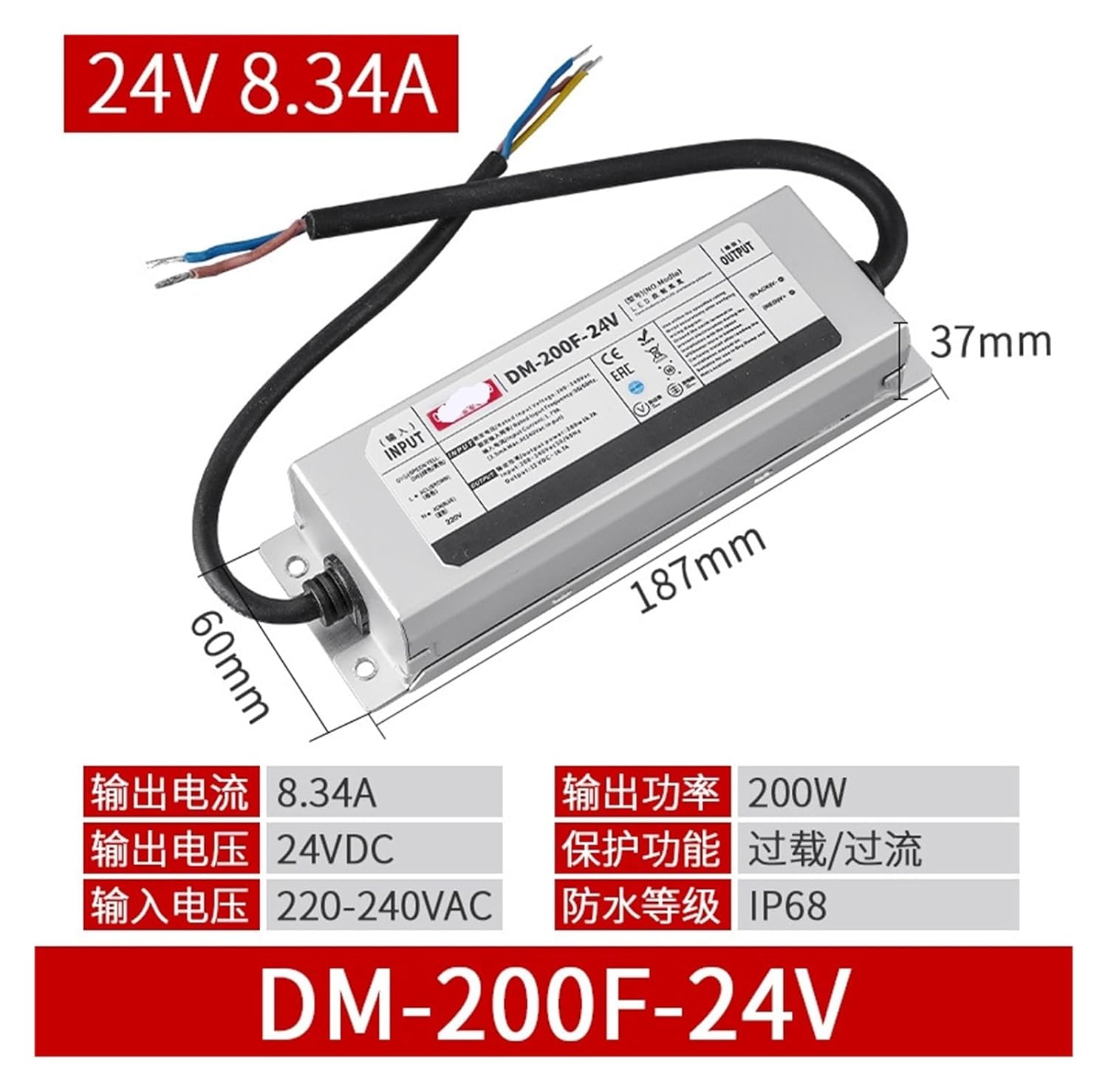 Low Voltage TransformersUnderwater power LED light box power supply 24V low voltage linear light with transformer 220 rpm DC switching power supply IP68 dustproof and waterproof