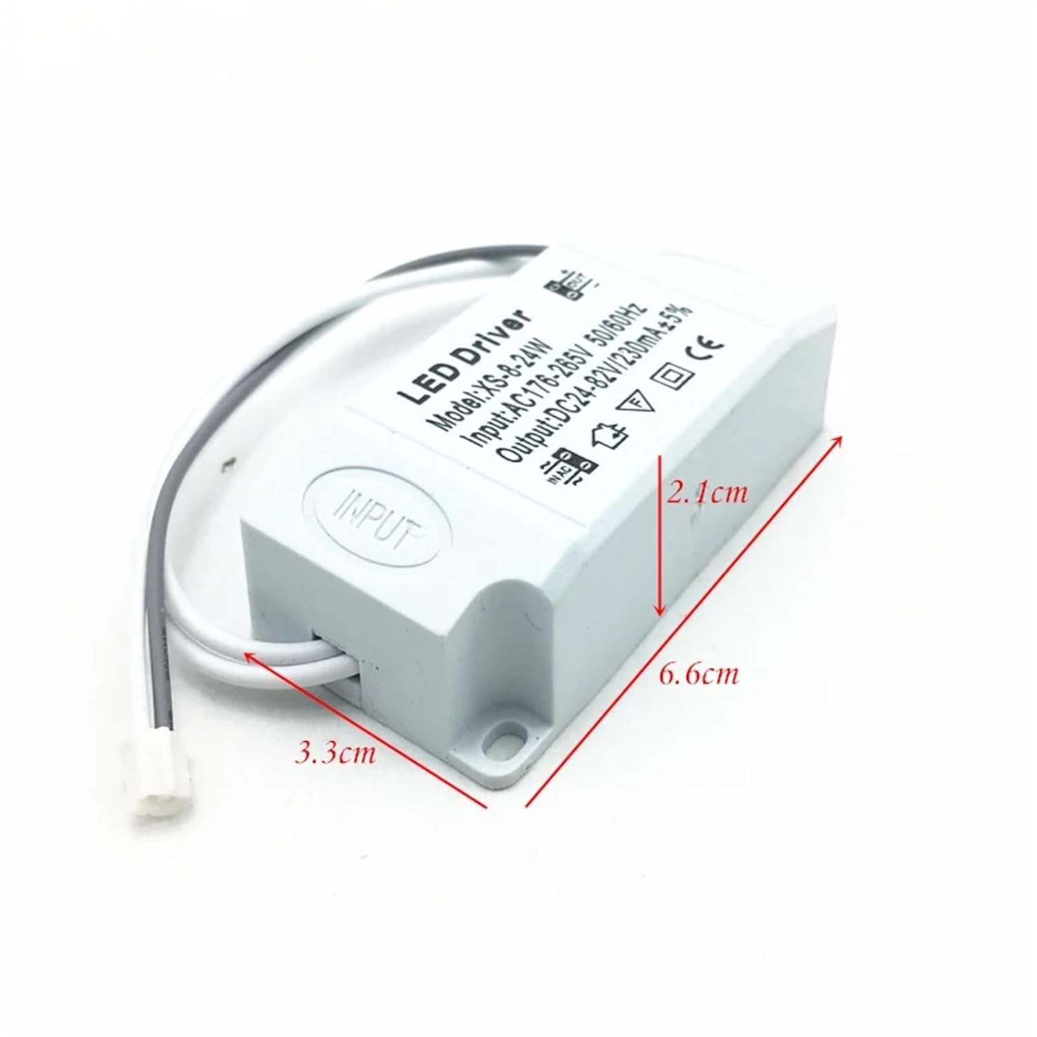 Low Voltage TransformersFeatures : ReliableWeight : 19gModel Number : ZQ-898Output Voltage : 24-85VInput Voltage : AC 175-265V 50/60HzItem Type : Lighting Product : LED Constant Current DriverPower : 8-24WCurrent : 230mADimensions : 63*33*21mm(L*W*H)