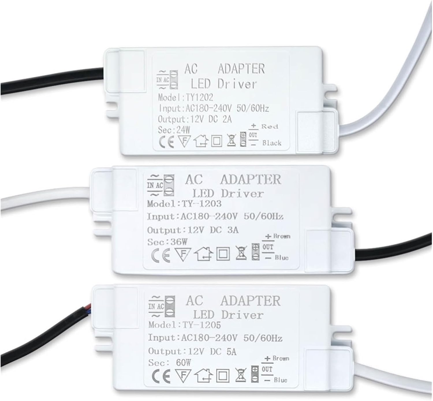 Low Voltage TransformersIsolated drive12W LED driverInput voltage: 100-240VOutput voltage: 12VOutput current: 1ASize: 84*36*20MM24W LED driverInput voltage:100-240VOutput voltage: 12VOutput current:2ASize: 95*44*21MM36W LED driverInput voltage:100-240VOutput voltage: 12VOutput current:3ASize: 110*45*25MM