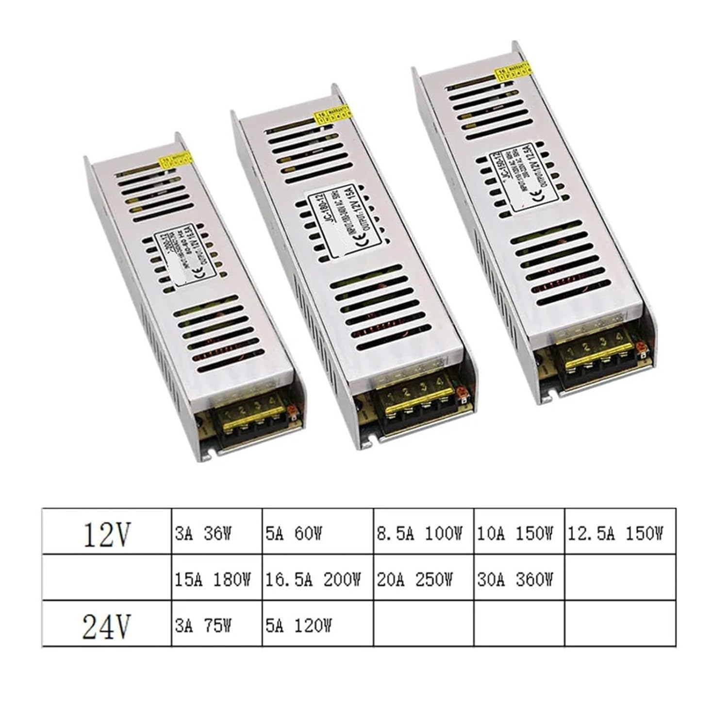 Power SuppliessizeDescribe product dimensions, including different sizes for different SKUs. Product DescriptionInput voltage: AC220V (not applicable to 110v)Output voltage: DC 12VOutput current: 3A 5A 8.5A 10A 12.5A 15A 20A 30AShell material: metal shell/aluminum shellSafety Compliance: CCC/RohsBuilt-in overvoltage, overcurrent, short circuit protectionWorking temperature: 0~40℃Storage temperature: -20~60℃Environmental humidity: 0~95%, no condensationPackaging: lighting transformer power supply