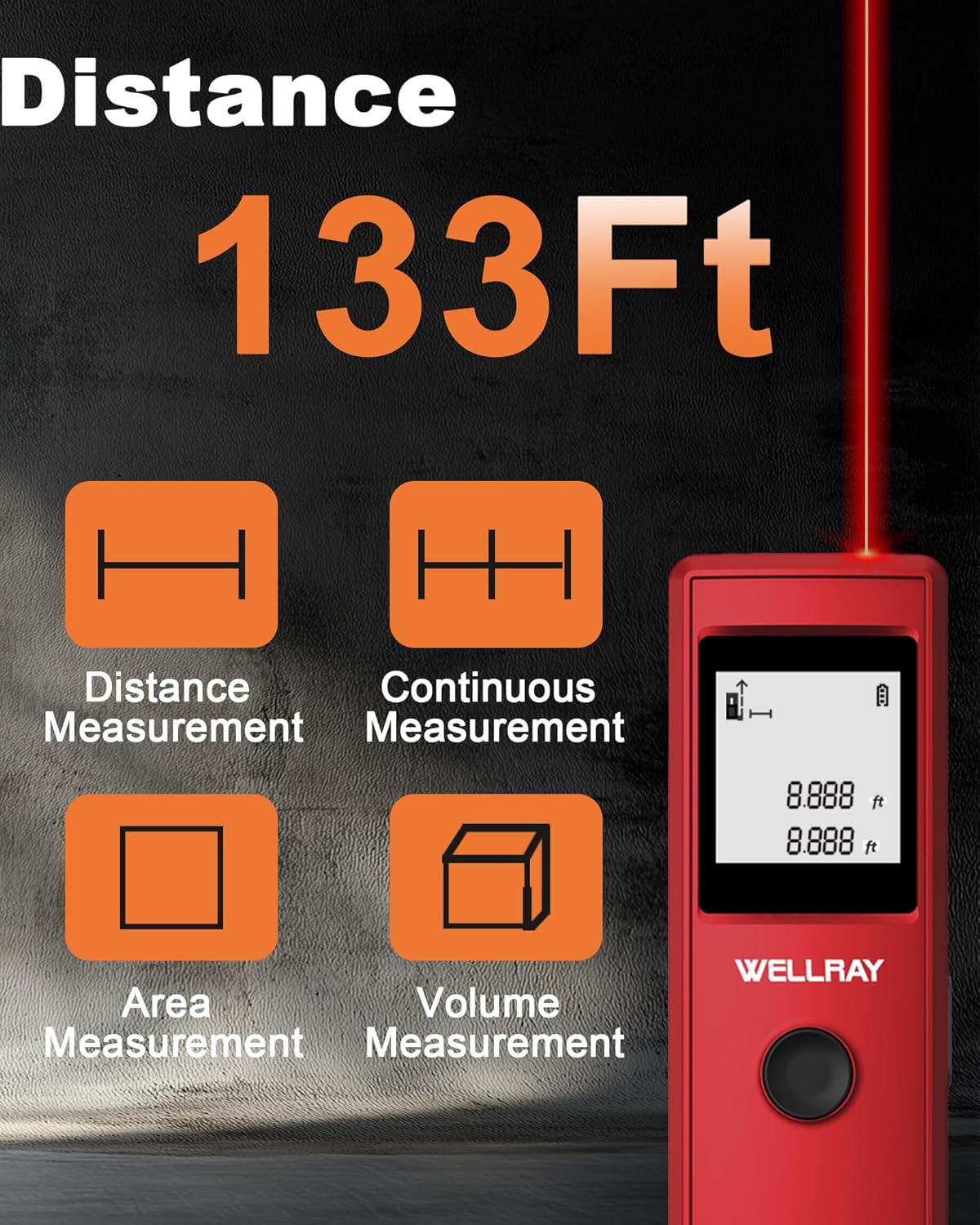 | Included Components | ★ 1* 133Ft Laser Measuring Tool, ★ 1* Hand Strap for Laser Distance Meter, ★ 1* User Manual for Laser Measure Tool, ★ 2* AAA battery for Laser Measurement Tool |