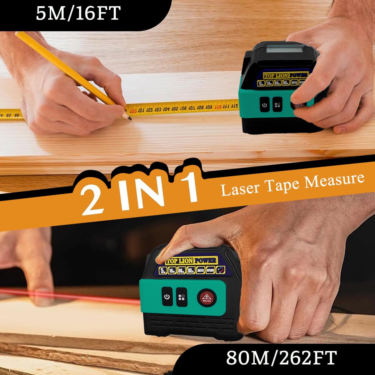 1【2-in-1 Precision Measurement】Combines a 250ft green laser distance meter (±3mm accuracy) and a 16ft self-locking tape measure, ideal for distance, area, volume and Pythagorean measurements with units of ft/m conversion. DURABLE ABS CONSTRUCTION - Made of sturdy ABS plastic, the laser tape measure is impact resistant, rust proof and built for long-term use in woodworking, DIY and professional workplaces. 【USB-C Rechargeable】Equipped with a USB-C port, this digital measuring tool supports up to 5,000 laser measurements per full charge, eliminating disposable battery costs and promoting eco-friendly use. USER-FRIENDLY FEATURES - Includes a magnetic hook for stable metal surface fixation, 3 intuitive mode buttons and stores 30 groups of historical data, perfect for both beginners and professionals. VERSATILE APPLICATION - Suitable for home remodeling, property inspection, industrial projects and more. A must-have for contractors, real estate professionals and DIY enthusiasts.