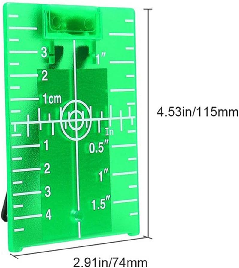 Product description Description:Enhances the visibility of laser line or point; Special reflective target film increases visibility of a red/green laser line or point when working over long distance or bright sunlight conditions.Easy to read scale with centre zero in both inches and cm markings.Magnets for convenient attachment to metal studs, hole diameter for hook , back stand folds out to keep upright and steady on floor. Positioning hole designed for comfortable hand holding.Suitable for alignment, laser level, cross line lasers, rotary lasers, laser measure and all red/green beam laser level.Material: ABS & ABSSpecification:Size: 7.5x11.5cm/2.95x4.53inch.Package Includes:1 Piece Laser Target Plate Manufacturer Contact Information Customer Care : (+91-9355855315), mukteshwarpuri5th@gmail.com