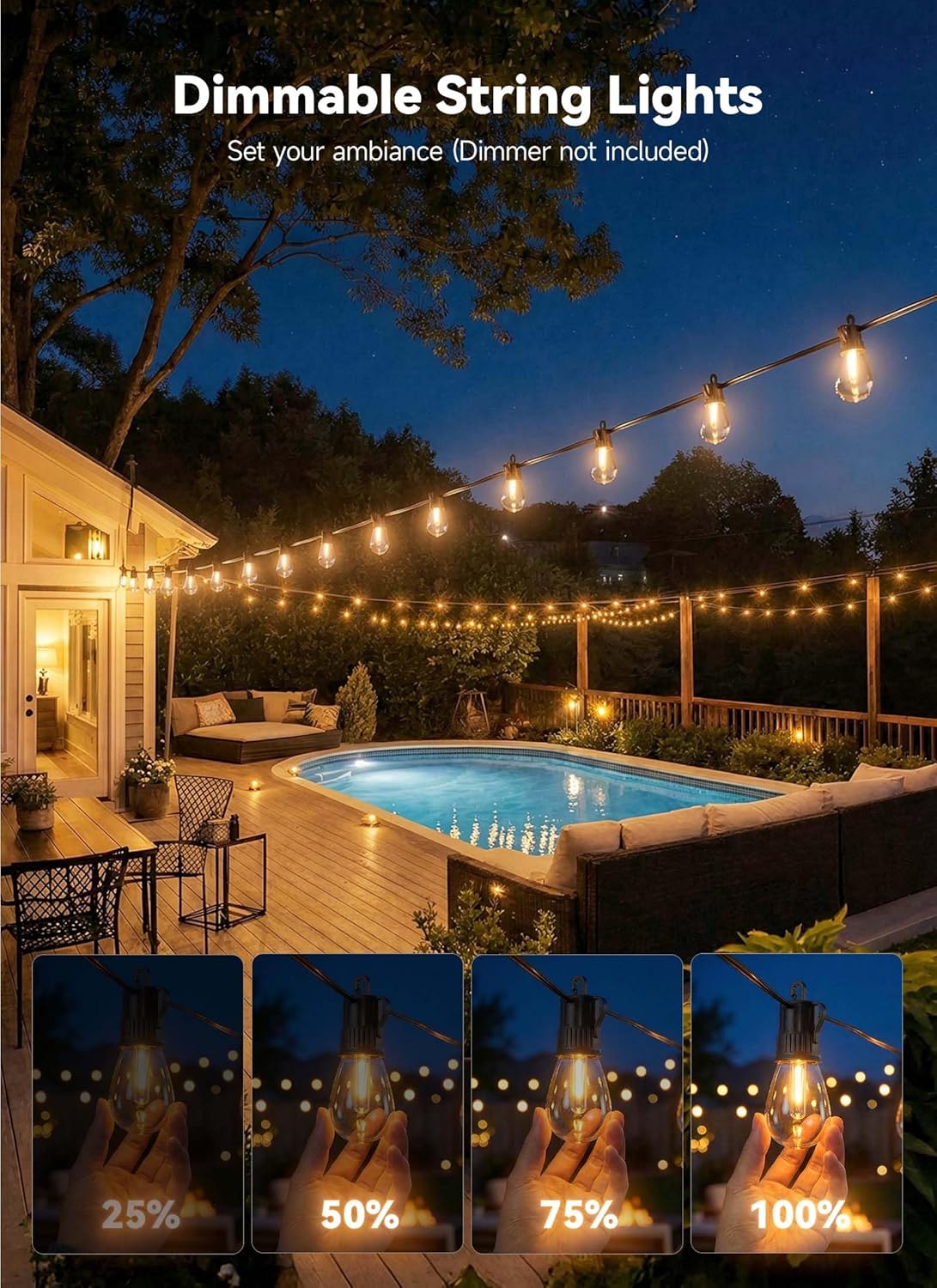 | Occasion | Birthday, Christmas, Outdoor String Lights, Wedding, Backyard, Bistro, Porch, Deck, Balcony |