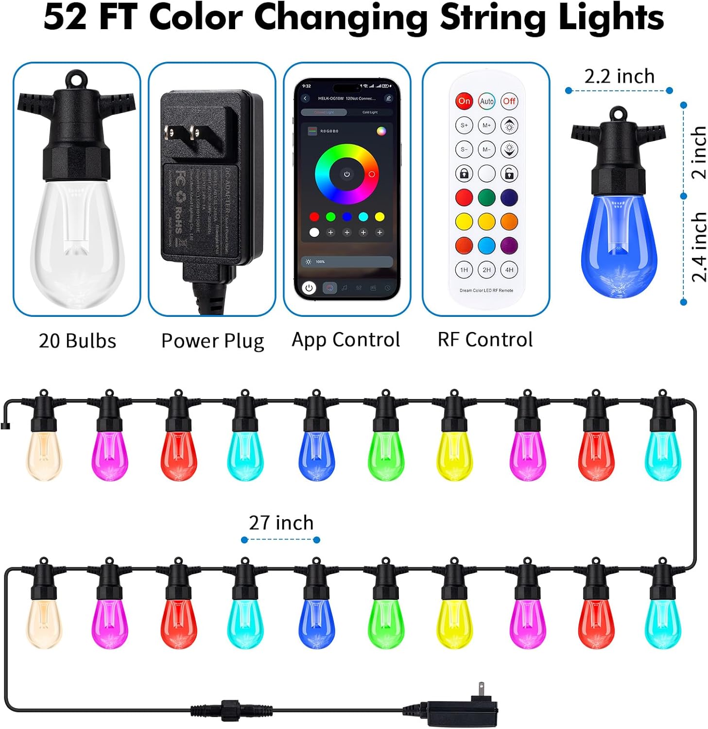 | Additional Features | APP & Remote Controlled, Color Changing, dimmable, Linkable, Shatterproof, Waterproof |
