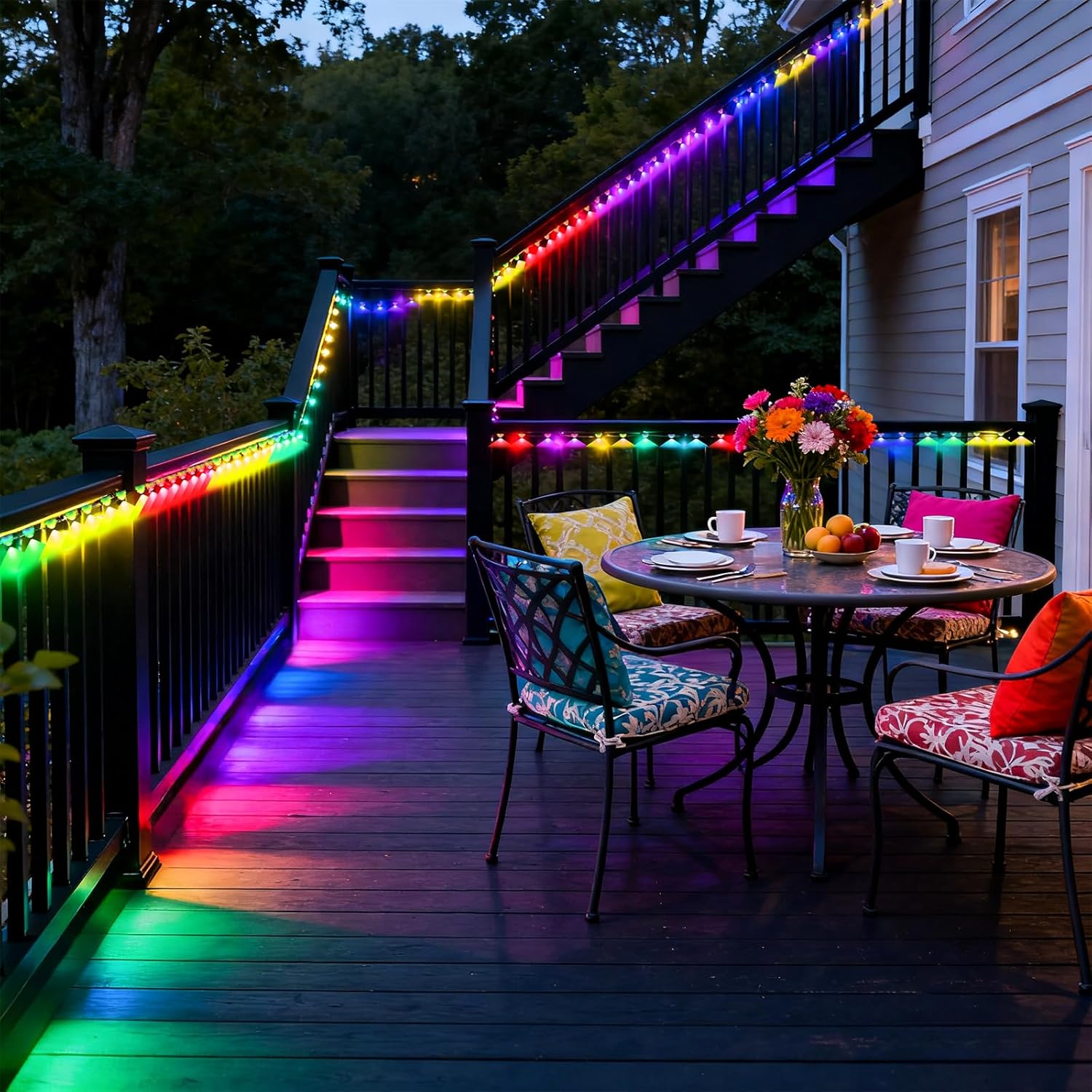 | Theme | Backyard party atmosphere, Barbecue gathering lighting, Family gathering mood lighting, Garden party decoration, Outdoor dining ambiance;Romantic dinner setting, Patio entertainment lighting, Pool party color effects |