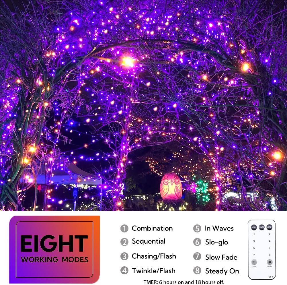 | Included Components | 13-button remote control, 200 LED Orange & Purple String Lights |