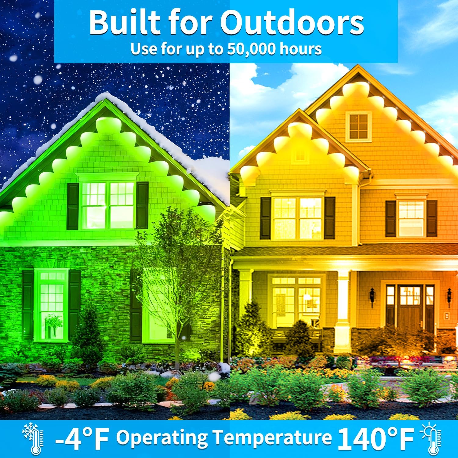Rroetxi 300FT Permanent Outdoor Lights, IP67 Waterproof LED Lights, App/Remote Control outside lights, permanent christmas lights for house christmas Party Festival Decoration (2 Rolls, 150 FT)