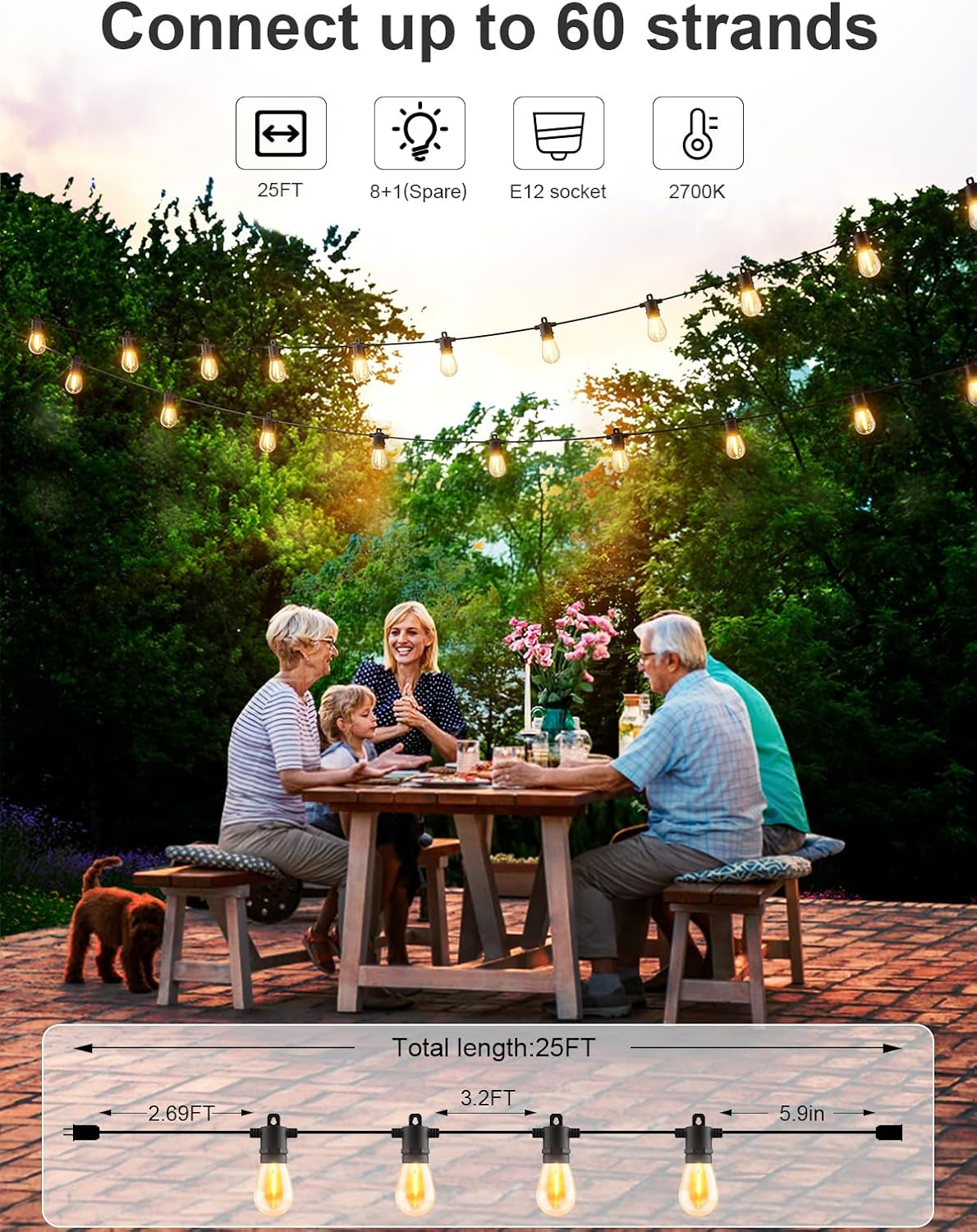 Svater Outdoor String Lights LED 25 FT + 60 FT Patio Globe Lights with 32 Plastic G40 Bulbs