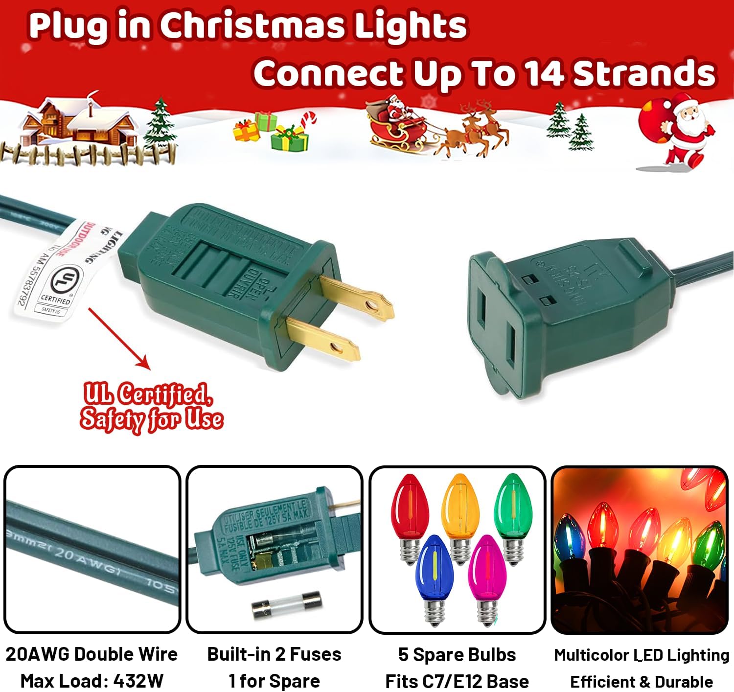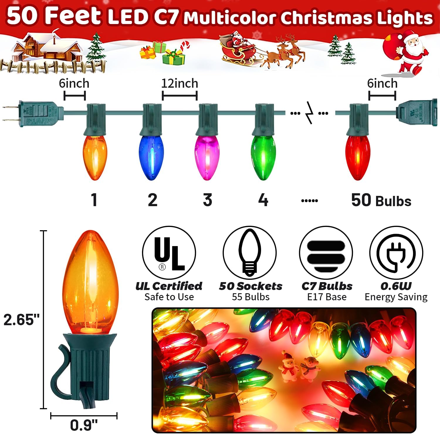 | Included Components | 2 Fuses (1 for Spare), 5 Spare LED Bulbs (1 for each color), 50 Feet LED Multicolor Christmas Lights with 50 Pack E12 Bulbs |