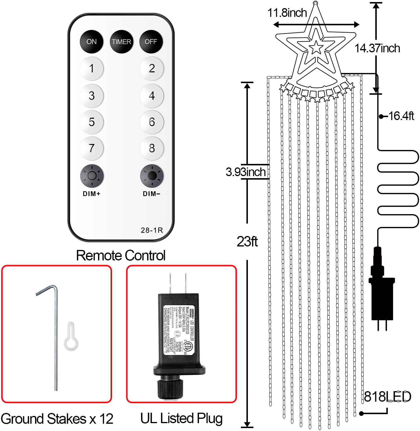 | Included Components | Star String Lights, Remote, Adapter, Ground Stakes, Manual |
