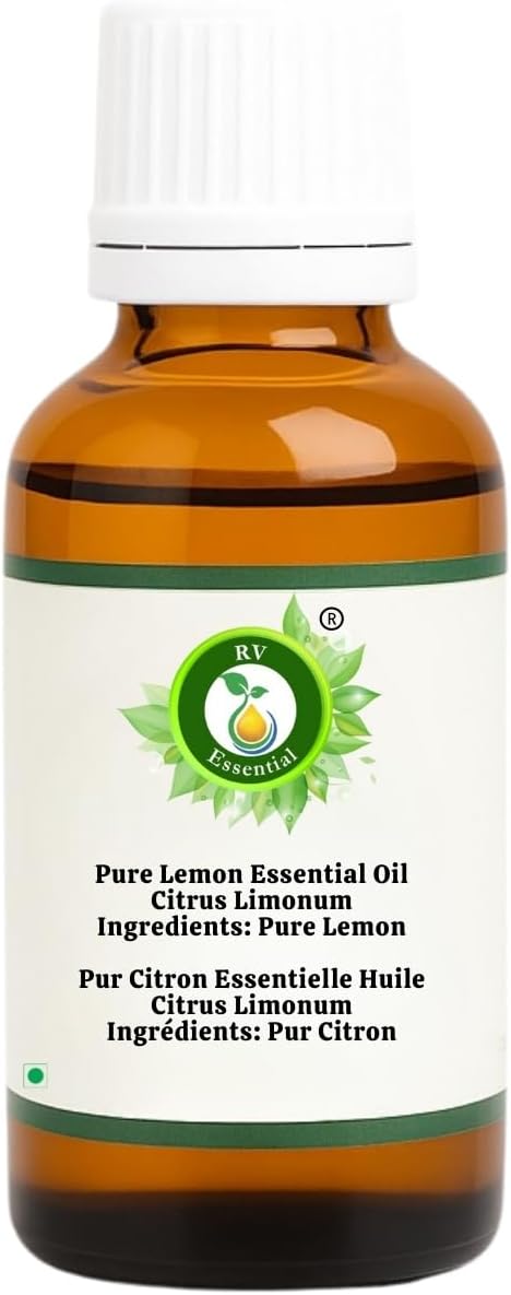 R V Essential Pure Lemon Essential Oil- Citrus Limonum (100% Pure and Natural Therapeutic Grade). Oils are packed in high quality amber glass bottles till 100ml. And 300ml, 630ml & 1250ml in high quality virgin aluminium bottles.