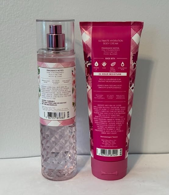 The Ultimate Hydration Body Cream (8 oz) contains natural essential oils, vitamin E, aloe, shea butter, cocoa butter, and hyaluronic acid. It provides intense 24-hour hydration to relieve dry skin. The Fine Fragrance Mist (8 fl oz) provides great coverage and offers the truest way to fragrance. Dermatologist tested.
