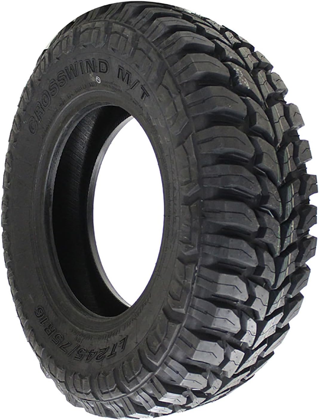 A mud terrain tire, the Crosswind M/T is meant for use on Jeeps, light trucks, and SUVs and features an aggressive tread pattern that improves traction and handling performance off-road. Shallow central grooves with strong shoulder blocks protect the tire against punctures, chips, and other damage, and the M/T wide tread block put more rubber on the ground to boost grip on unpaved roads.