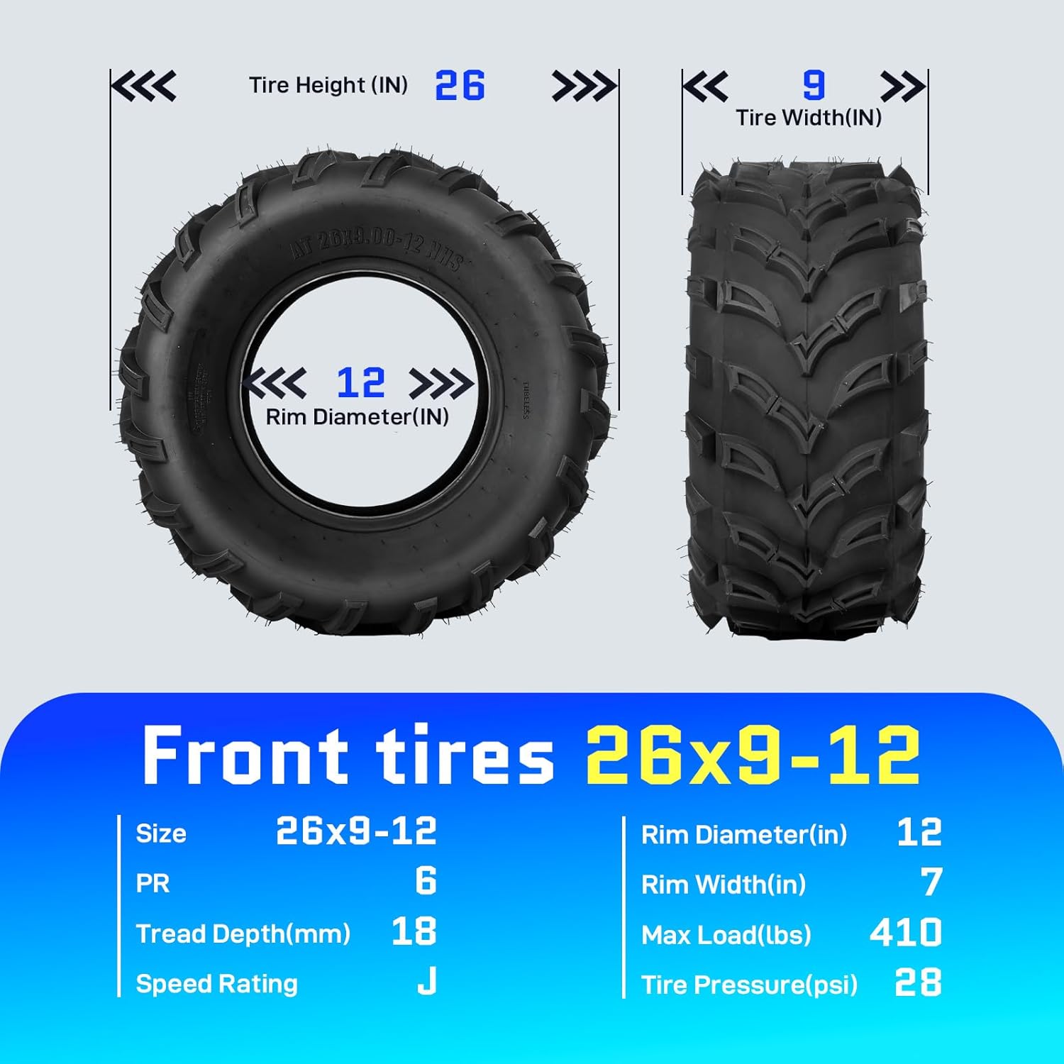 | Included Components | 4 Pcs 26x9x12 26x11x12 ATV UTV tires |