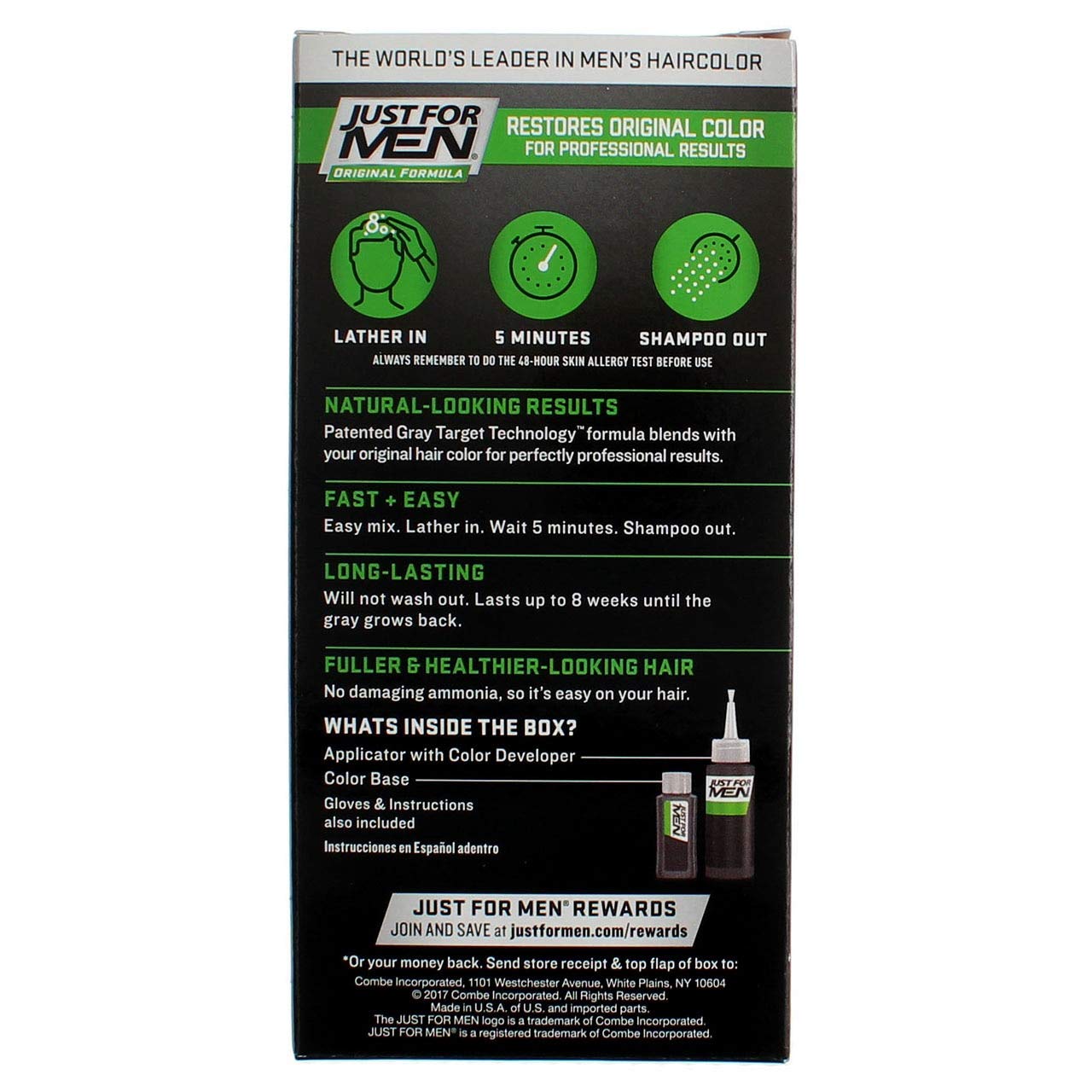 Eliminating grays is as easy as combing your hair. With Just For Men's Shampoo-In Color Ash Brown H-20, one tube of this patented no-mix formula. Give it 10 mins to blend away the grays, then wash it out, for a natural, gray-free look. Great for targeting gray areas or covering grays throughout your hair. Lasts up to 8 weeks until grays grow back. It does not contain damaging ammonia. You can apply it anytime. It may be easier to apply after a fresh haircut.