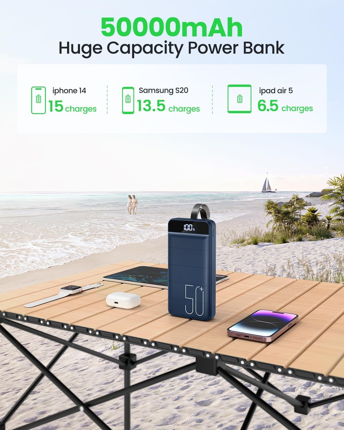 Portable Charger Power Bank 50000mAh Fast Charging USB C External Battery Pack for Camping