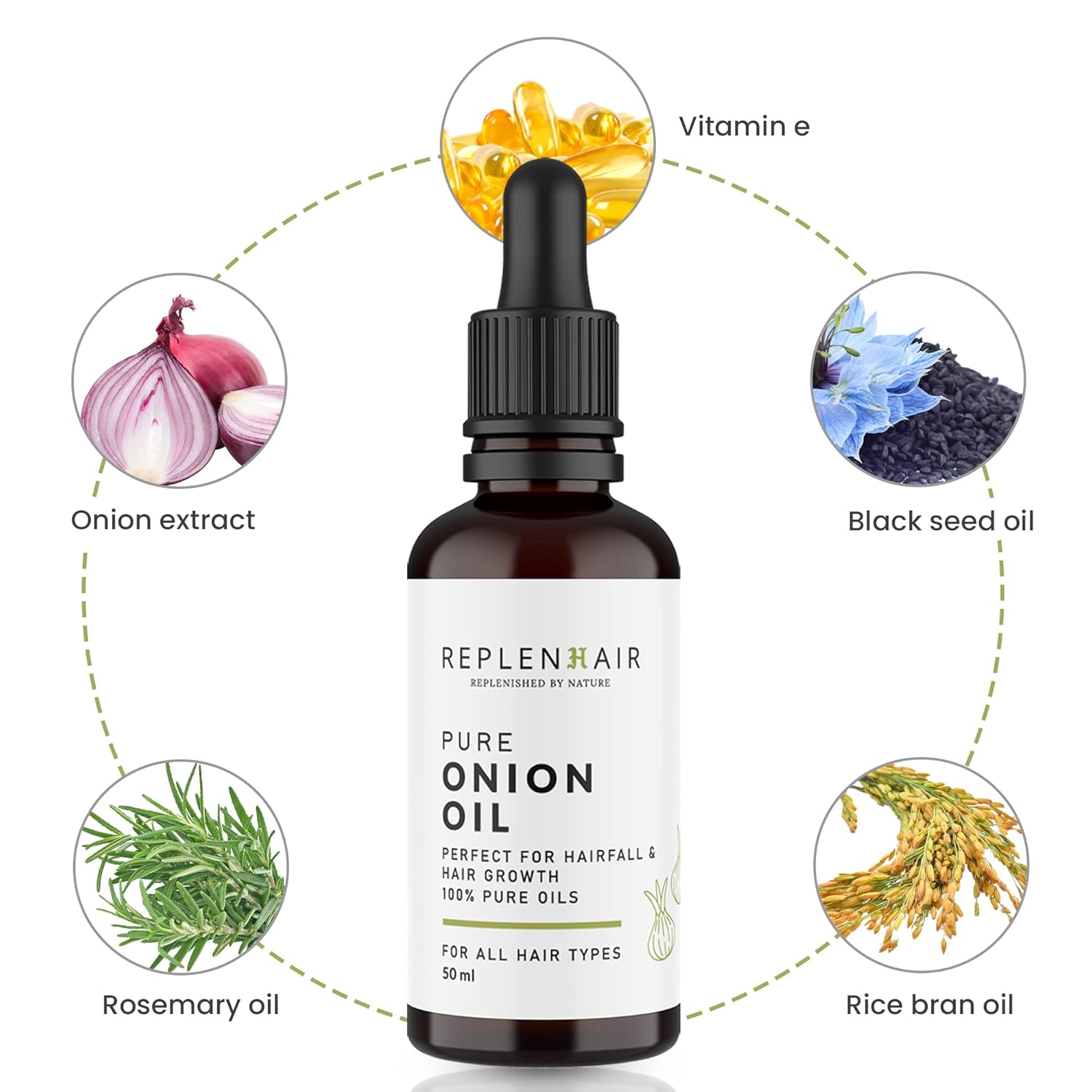 Replenhair hair oil for curly hair is your ultimate solution for addressing multiple hair concerns. This carefully crafted formula combines the power of organic black seed oil with nourishing ingredients to create the perfect hair oil for curly hair, straight hair, and all textures in between. Designed for both men and women, this lightweight oil works as a hair serum for hair growth promoting thicker, healthier locks. Say goodbye to breakage and frizz with our advanced anti frizz hair serum, specially formulated for smooth, manageable hair. As a versatile hair tonic, it doubles as a hair moisturiser, ensuring deep hydration while reducing dryness. Replenhair onion oil for hair growth is ideal for dry damaged hair, providing intensive repair and nourishment to bring life back to your strands. This multipurpose oil for hair growth also functions as a scalp serum, soothing irritation and hydrating with the properties of a premium scalp moisturiser. For those dealing with scalp discomfort, it serves as the perfect scalp oil for dry itchy scalp, promoting comfort and balance. Its deeply penetrating formula acts to repair and regrow your hair, ensuring healthier, more resilient hair from root to tip. Our pure vitamin e oil is perfect for taming unruly locks, making it the go-to hair oil for frizzy hair and curly hair oil. It also helps boost volume, working as a natural hair volumizer and hair thickener for a fuller, more vibrant look. Whether you need a hair serum for women to combat dryness or a reliable oil for hair for daily care, Replenhair hair oils for hair growth offer a comprehensive solution for every need. Transform your hair care experience today with this all-in-one product – a reliable scalp tonic, and indispensable hair serums. Let Replenhair black seed oil for hair growth rejuvenate your hair and scalp, ensuring long-lasting results with every use.