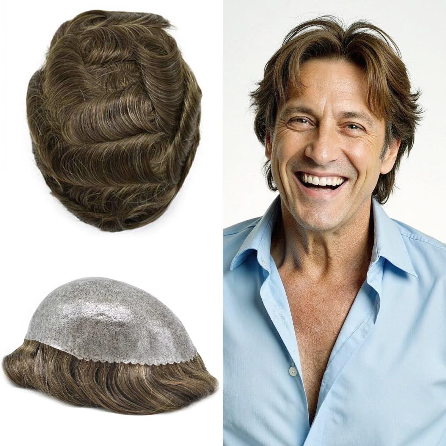 JUST HAIR Toupee for Men Real Human Hair Replacement System 0.10mm Full Poly Skin Invisible PU Mens Hairpiece Durable Thin Skin Hair Unit๐๐จ๐๐๐ฅ ๐๐๐ฆ๐๏ผPAPY-J Mens Toupee ๐๐๐ฌ๐ ๐๐๐ฌ๐ข๐ ๐ง๏ผ0.1MM Durable Thin Poly ๐๐๐ฌ๐ ๐๐ข๐ณ๐๏ผ 8"X10" ๐๐๐ข๐ง ๐๐๐ข๐ซ ๐๐๐ญ๐๐ซ๐ข๐๐ฅ๏ผRemy Human Hair Piece ๐๐ซ๐๐ฒ ๐๐๐ข๐ซ ๐๐๐ญ๐๐ซ๐ข๐๐ฅ๏ผSynthetic Fiber ๐๐๐ข๐ซ ๐๐๐ง๐ ๐ญ๐ก:6 Inch Short Hair ๐๐๐ข๐ซ ๐๐๐ฏ๐: 32mm Natural Wave ๐๐๐ข๐ซ ๐๐๐ง๐ฌ๐ข๐ญ๐ฒ:120% Medium Light to Medium Density ๐๐๐ข๐ซ ๐๐จ๐ฅ๐จ๐ซ:More Than 90 Colors Are Avaiable ๐๐๐ข๐ซ ๐๐ญ๐ฒ๐ฅ๐: Free Style ๐๐๐๐ ๐๐๐ญ๐ก๐จ๐: PU Injected ๐๐ญ๐จ๐๐ค: Yes ๐๐๐ง ๐๐ ๐๐ฎ๐ฌ๐ญ๐จ๐ฆ๐ณ๐ข๐: Yes Warm Tips: 1. We have dyed the hair and fixed the color, it could not be bleached to lighter one. 2. Color may be a little different due to the color calibration of your computer monitor or cell phone brightness settings.