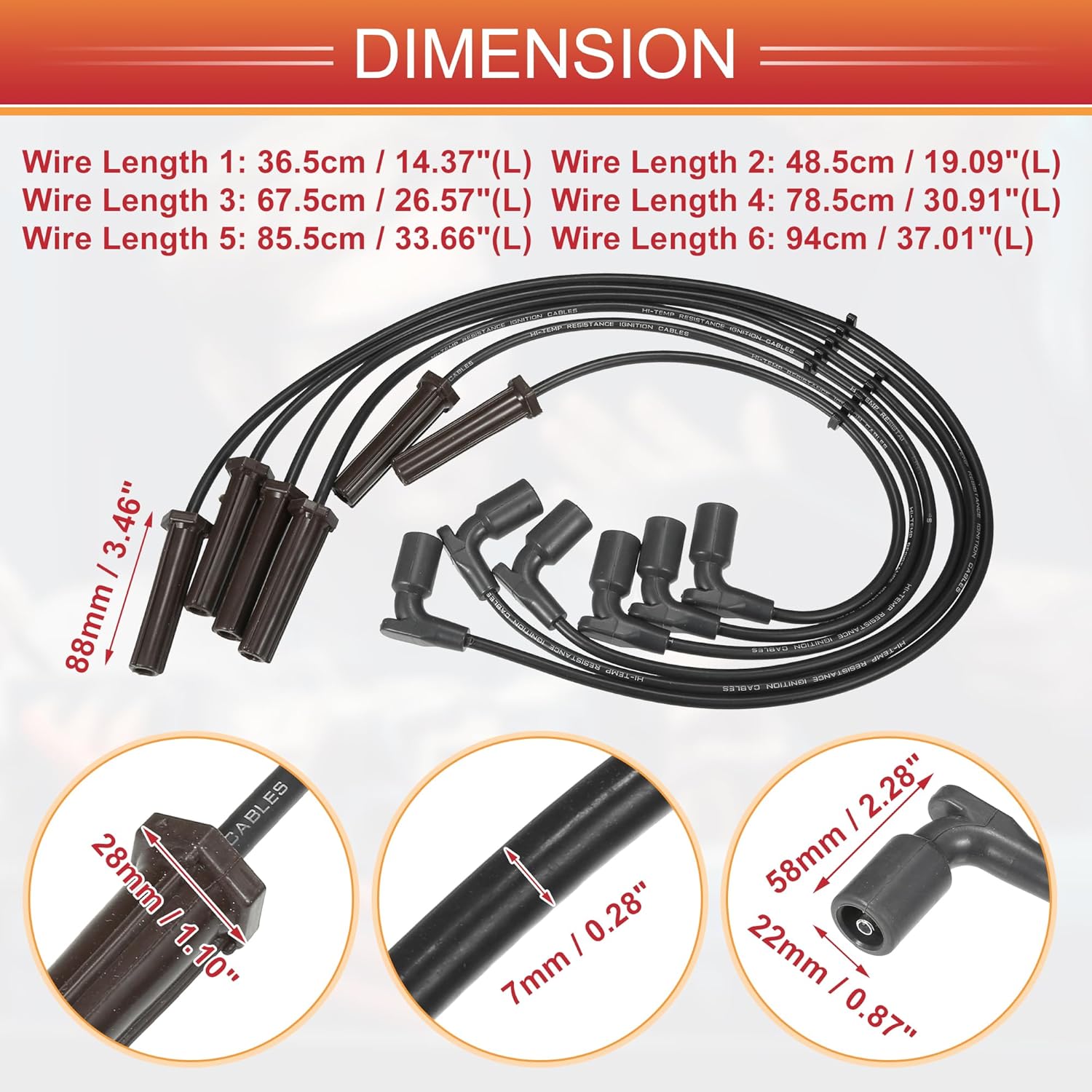 • Package Includes: 6 Pcs Spark Plug Ignition Coil Wires.
