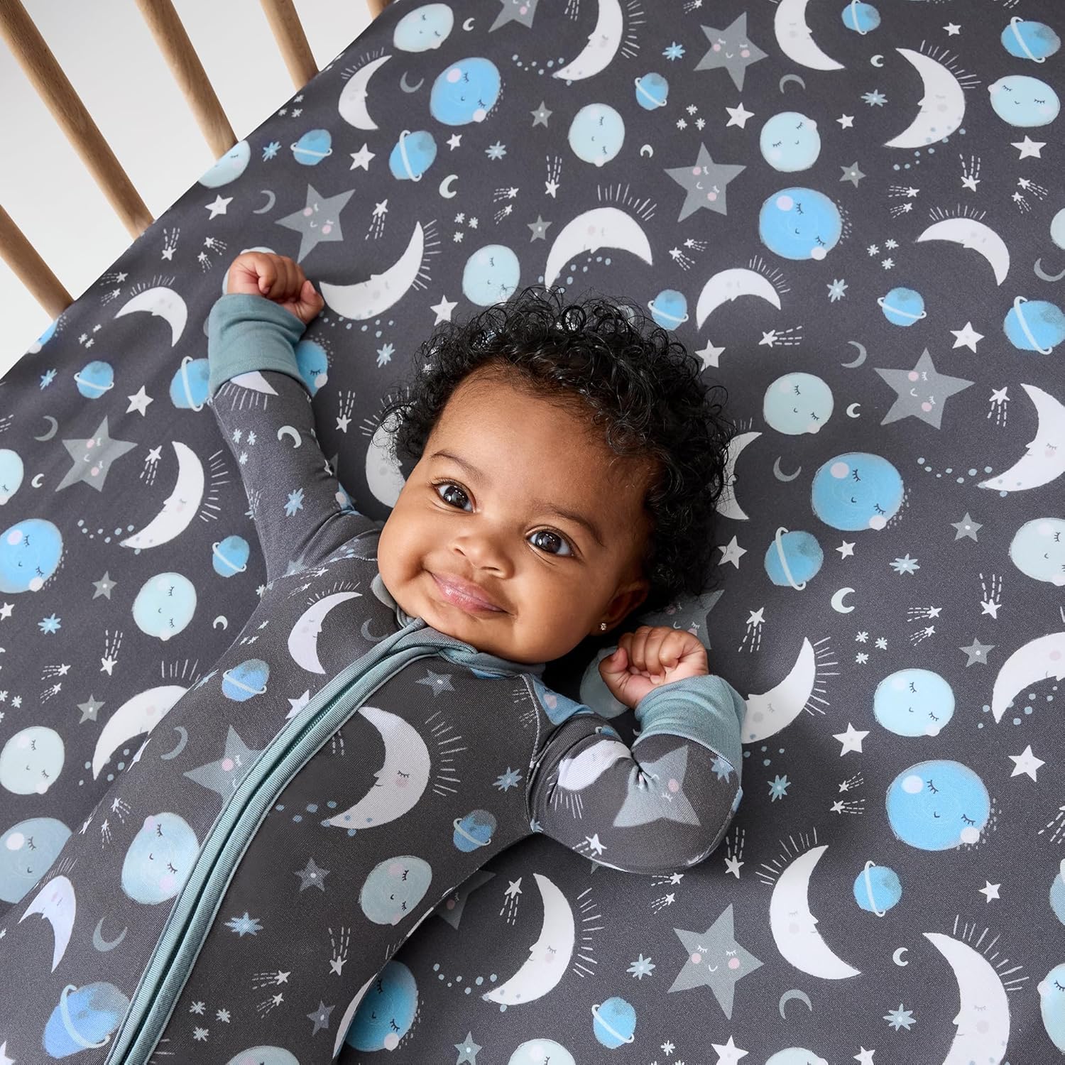 Little Sleepies Viscose from Bamboo Crib Sheets – Ultra Soft, Breathable & Snug-Fit Crib Sheets for Baby Boys, Girls & Newborns Wrap your baby’s sleep space in the softest comfort with Little Sleepies Viscose from Bamboo Crib Sheets, crafted from our exclusive Lunaluxe viscose from bamboo fabric. Designed to fit both standard cribs and mini cribs, these buttery soft crib sheets are breathable, hypoallergenic, and temperature-regulating—perfect for delicate newborn skin and year-round use. Whether you're shopping for baby crib sheets for girls, boys, or gender-neutral nurseries, these viscose from bamboo crib sheets offer a cozy, safe, and snug fit for newborns, infants, and toddlers alike. Featuring an extra-stretchy elastic band all the way around, these crib sheets stay securely in place through naps, nighttime sleep, and everything in between. The breathable viscose from bamboo fabric keeps baby cool in the summer and warm in the winter, while the ultra-soft texture is gentle enough for even the most sensitive skin. Lightweight, durable, and machine washable, Little Sleepies crib sheets are built for everyday use and endless snuggles. Available in adorable, limited-edition prints that coordinate with our bestselling Zippies, swaddles, toddler bedding, and more, these mini crib sheets make a perfect baby shower gift, newborn essential, or standout item on your baby registry. Parents love them for their unmatched softness, chic nursery style, and how well they hold up wash after wash. If you’re searching for the best viscose from bamboo crib sheets, mini crib sheets, or baby crib sheets for boys, girls, or neutral themes, Little Sleepies delivers on comfort, safety, and style. Add a pop of personality to your nursery with crib sheets that are as cute as they are cozy—because your little one deserves the very best sleep, every night.