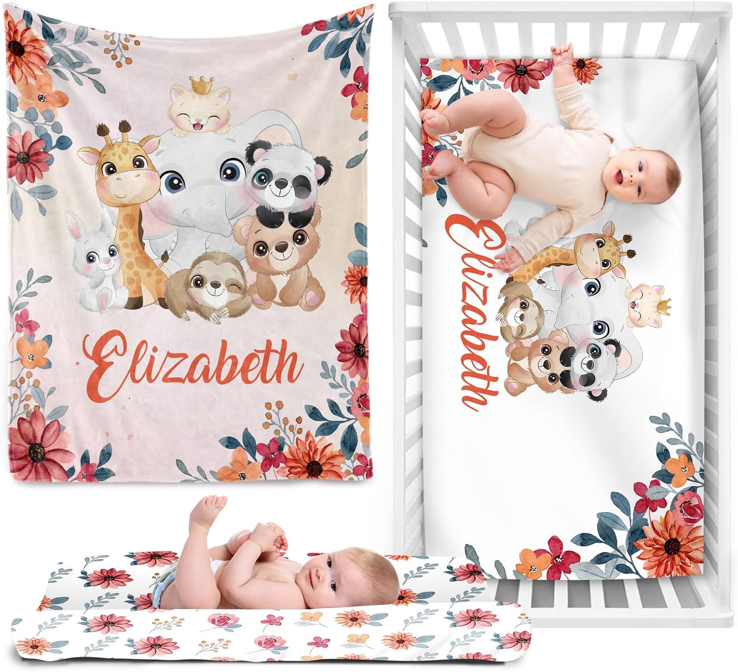 Introducing our personalized deer green crib bedding set, perfect for your little baby boy! This set includes a baby blanket, crib fitted sheet, and diaper changing pad cover, all adorned with a beautiful deer green pattern. Our custom name crib bedding set is the perfect special gift for any new parents. The high-quality materials used in this set ensure that it is both safe and comfortable for your baby. The nursery crib bedding set is designed with your baby boy in mind, featuring a stunning deer green pattern that is sure to delight your little one. The set includes a baby blanket, crib fitted sheet, and fitted diaper changing pad cover, all personalized with your baby's name. Our boy crib bedding set is made with the highest quality materials, ensuring that your baby is safe and comfortable at all times. The crib bedding set for boy is perfect for any nursery, adding a touch of elegance and style.The baby crib comforter set is perfect for keeping your baby warm and cozy, while the crib fitted sheet and diaper changing pad cover provide a comfortable and safe place for your baby to rest and play. Package Include:1x Crib Sheet1x Baby Blanket1x Changing Pad CoverSpecifications for each item:Crib Sheet Size: 28x52 inchesBaby Blanket Size: 30x40 inchesChanging Pad Cover Size: 16x32 inches