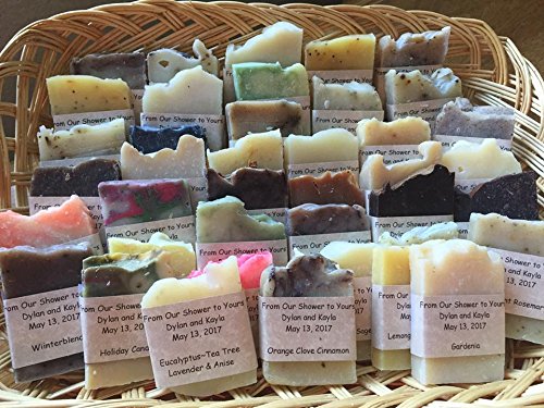 Sampler Soap Bars. Variety of 75 Essential oil soap bars approximately 1 ounce each. Hand-crafted using all natural ingredients. Made in small batches and handcut. Each batch is cured for 4 weeks. Each bar is approximately 1 ounce. A variety of the listed soaps that are available at the time of purchase: Essential Oils: Anise (Black Licorice), Active charcoal with tea tree, Active charcoal unscented, Eucalyptus Spearmint, Eucalyptus Tea Tree Lavender & Anise, Eucalyptus Rosemary, Gardener Soap (Lemon & Pumice), Grapefruit Ylang Ylang, Complexion Bar - Orange Honey & Oatmeal w/ Almond Milk, Complexion Bar - Lemon Honey & Oatmeal w/ Almond Milk, Complexion bar - honey & almond milk unscented , Lavender, Lavender Cinnamon, Lavender/Patchouli, Lavender/Rosemary, Lavender/Tea Tree, Lemongrass, Lemongrass/Patchouli, Orange Cinnamon Clove, Orange Patchouli, Patchouli w/ ground pumice, Peppermint Rosemary, Peppermint, Spearmint, Winter Blend, Vanilla Bean