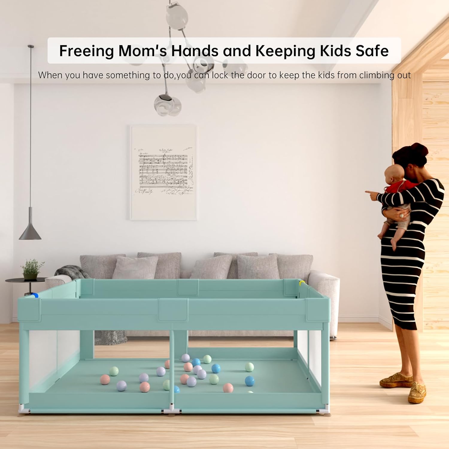Safety: The height of our baby playpen is 27 inches, which can protect children's safety well and is suitable for children aged 6 months to 6 years old. And our baby playpen uses multiple suction cups, which can be better fixed and prevent children from tilting due to playing,Free Parents' Hands: When you need to deal with work or other things, your child can be placed in our baby playpen. It has a zippered door so that the child cannot climb out. You can always pay attention to the safety of your child and handle emergencies things,Exercise Your Child's Independent Ability: Our baby playpen comes with two grab handles, which can allow your child to learn to walk independently and help your child learn to walk faster.