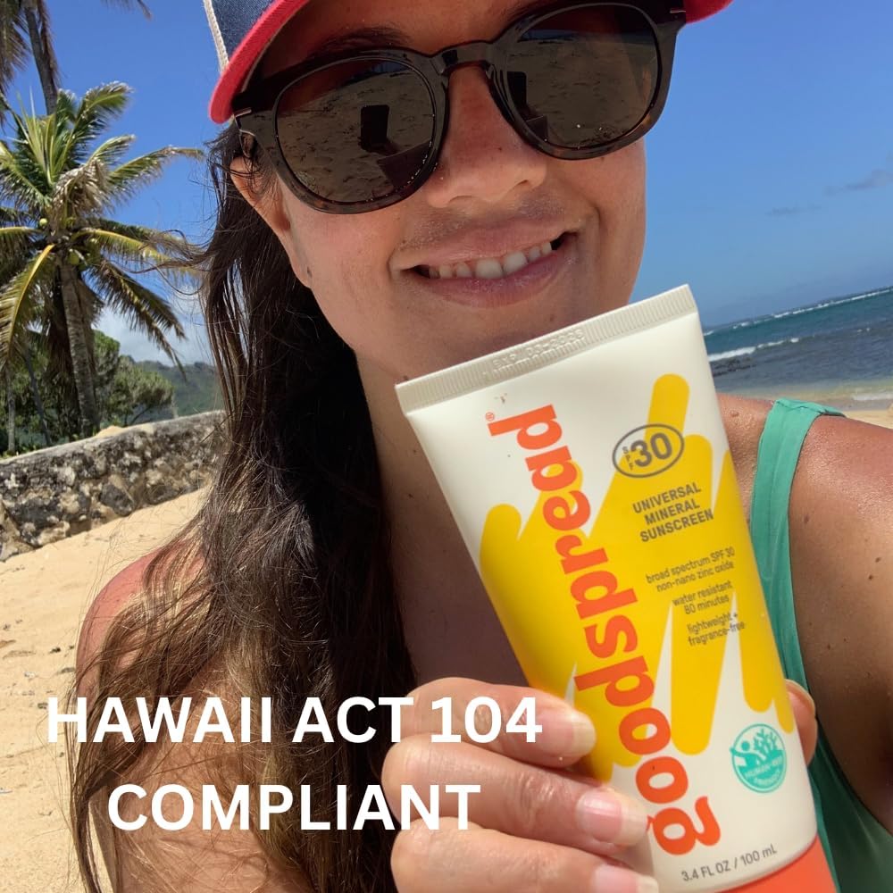 Meet your everyday go-to for sun protection—Goodspread Mineral Sunscreen SPF 50 2-pack, a clean, lightweight formula designed to keep up with every adventure. Powered by non nano zinc oxide, this mineral sunscreen delivers broad spectrum UVA/UVB protection while rubbing in clear, so you get effective coverage without the heavy, chalky feel. Made for face and body, this reef safe sunscreen is formulated without oxybenzone or octinoxate and follows Hawaii compliant standards, making it a better choice for oceans, lakes, and wherever the sun takes you. Whether you're heading to the beach, out on a hike, or just enjoying a sunny day, Goodspread is built for real life in the outdoors. Our water resistant (80 minutes), fragrance-free formula is gentle enough for sensitive skin and suitable for both adults and kids. It’s a clean mineral sunscreen that feels good to wear every day—no grease, no irritation, no compromises. At Goodspread, we believe sun care should be simple, effective, and better for people and the planet. That’s why we use thoughtfully selected ingredients and eco-conscious packaging—so you can spread it on and get outside with confidence.