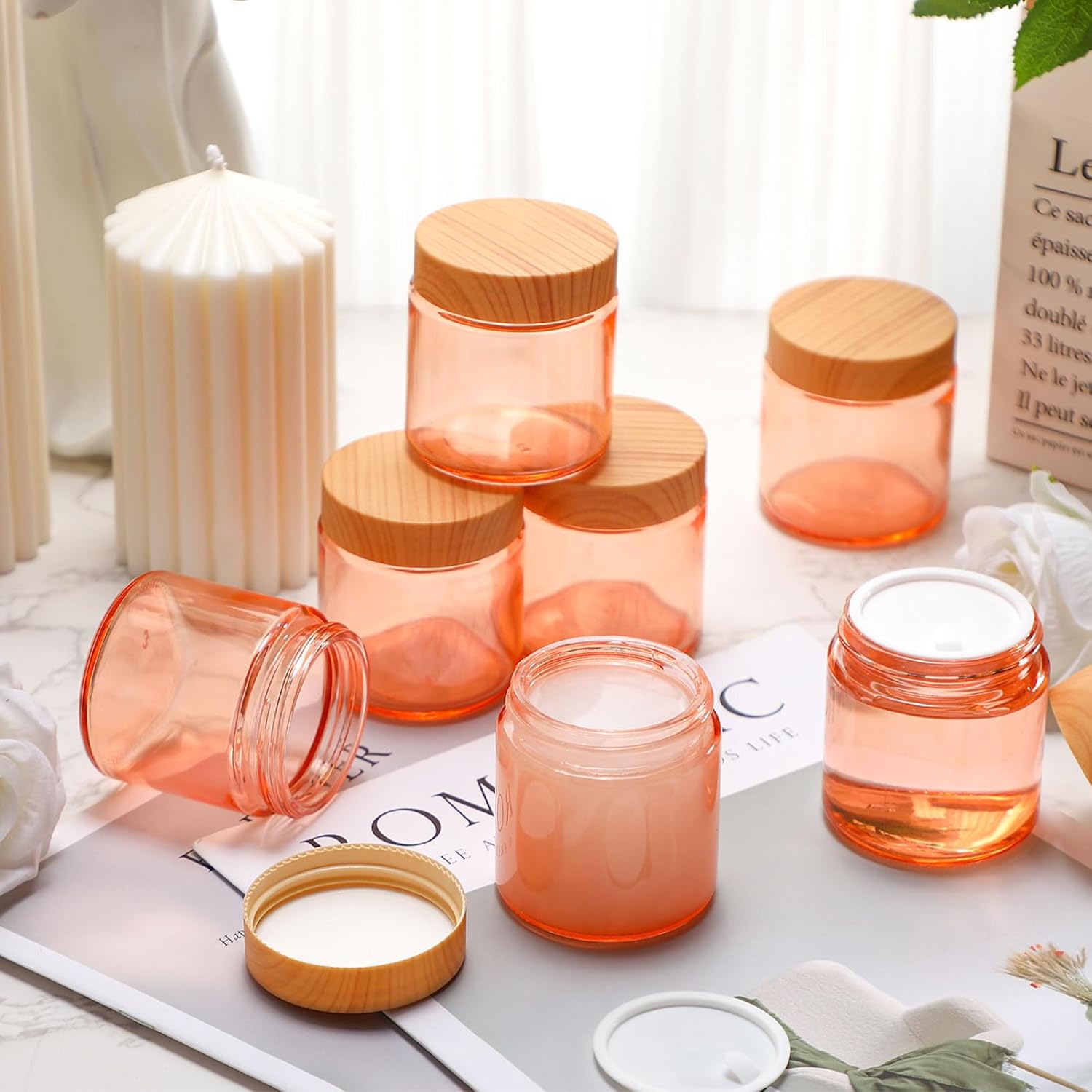 Features: Reliable and durable: The glass jars for lotion are made of sturdy glass body and plastic lids that provides better preservation of contents, which can withstand drops and impacts, making them ideal for transportation and storage, which can accompany you for a long time. Stylish design: The 4oz cosmetic jars with lids comes in wood grain lid that makes them an attractive display item when they are applied, adding a touch of elegance to home, store, or laboratory. Specifications: Material: plastic, glass Main color: pink Size: about 2.8 x 2.2 inches/ 7.11 x 5.59 cm Capacity: about 4 ounce/ 120 ml Package includes: 24 x Pink glass bottles with airtight lid 4oz Notes: Manual measurement, please allow slight errors on size. The color may exist a slight difference due to different screen displays. Fragile products, please put them gently to avoid breaking