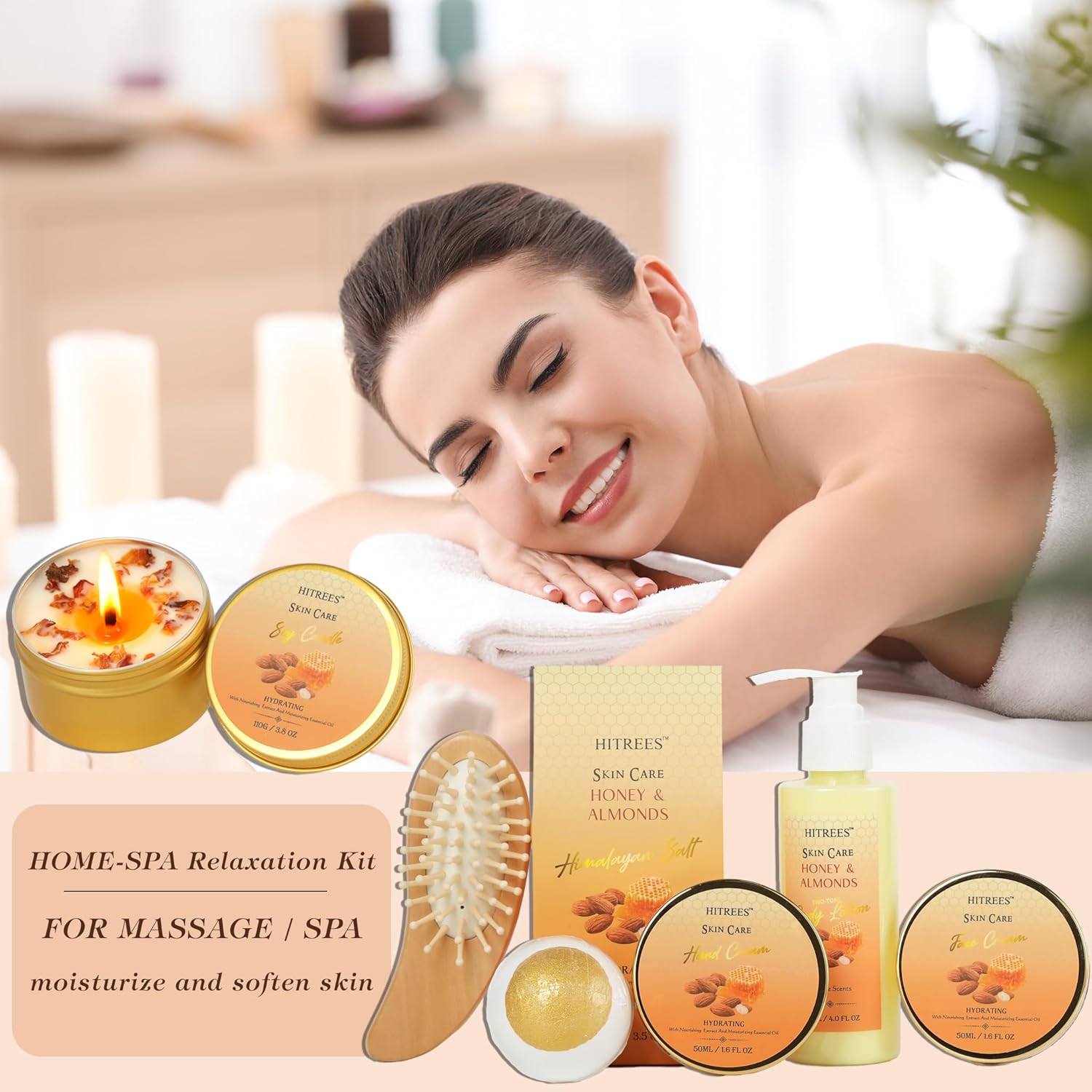 • Almond Milk & Honey fragrance Spa Gift Baskets: Leave the ordinary behind when you lavish yourself on the soft, fragrance of fresh and sweet Almond Milk & Honey, and make you feel blissful like a holiday. The scent smells fresh. Honey Almond and Jasmine Fragrance – The delightful Honey Almond fragrance creates a comforting and soothing aroma, while the Jasmine-scented body lotion adds an extra layer of floral elegance. Together, they transform your bath into a luxurious spa-like experience. The spa gift baskets for women offer the most luxurious and perfect bath experience