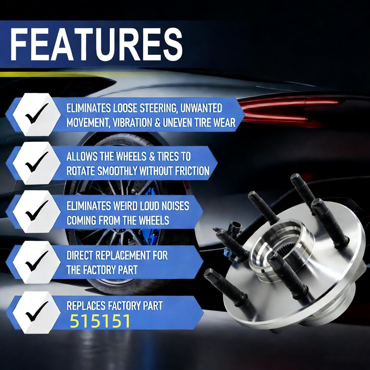 | Included Components | 515151 Front Wheel Bearing and Hub Assembly |