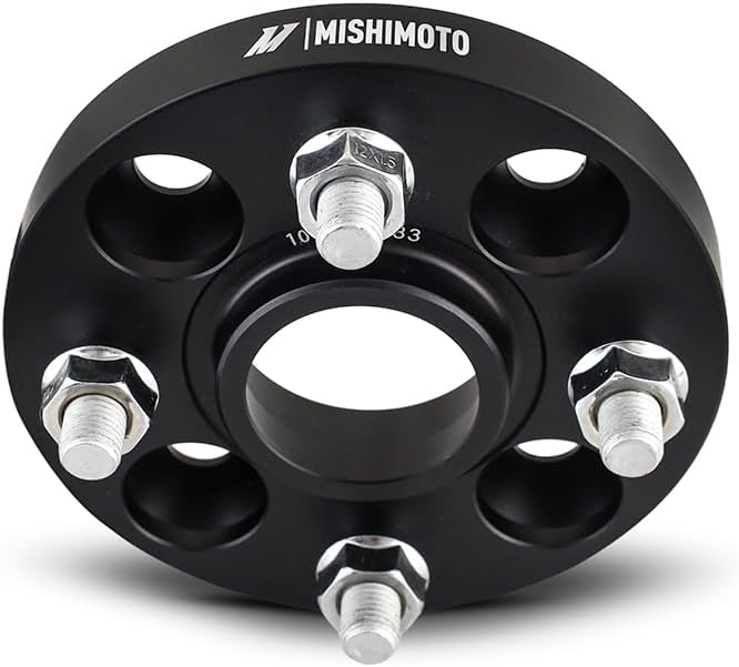 Wheel spacers are a great way to create brake clearance, add track width, prevent tire rub, and provide ideal wheel fitment on your vehicle. Mishimoto now offers a complete catalog of wheel spacers for a variety of common thread patterns, center bores, and thicknesses. Quality material selection, precise engineering, and meticulous manufacturing are critical elements to creating our incredibly robust products, and our wheel spacers are no different. Each spacer is forged from 6061-T6 aluminum. This material offers a perfect blend of strength and lightness, both are extremely vital in this application. Our spacers feature grade-12.9 steel studs and lug nuts, ensuring a safe and secure installation. Mishimoto's hub-centric design provides a direct extension of the axle hub for precise wheel fitment, reduced load on the hardware, and ensures safe and smooth driving.----Mishimoto wheel spacers feature a black anodized finish to ensure protection against corrosion. Each kit contains two wheel spacers with pre-installed studs and all hardware necessary for installation. As with all our products, this wheel spacer kit includes our signature Lifetime Warranty.; Wheel spacers are a great way to create brake clearance, add track width, prevent tire rub, and provide ideal wheel fitment on your vehicle. Mishimoto now offers a complete catalog of wheel spacers for a variety of common thread patterns, center bores, and thicknesses. Quality material selection, precise engineering, and meticulous manufacturing are critical elements to creating our incredibly robust products, and our wheel spacers are no different. Each spacer is forged from 6061-T6 aluminum. This material offers a perfect blend of strength and lightness, both are extremely vital in this application. Our spacers feature grade-12.9 steel studs and lug nuts, ensuring a safe and secure installation. Mishimoto's hub-centric design provides a direct extension of the axle hub for precise wheel fitment, reduced load on the hardware, and ensures safe and smooth driving.----Mishimoto wheel spacers feature a black anodized finish to ensure protection against corrosion. Each kit contains two wheel spacers with pre-installed studs and all hardware necessary for installation. As with all our products, this wheel spacer kit includes our signature Lifetime Warranty.