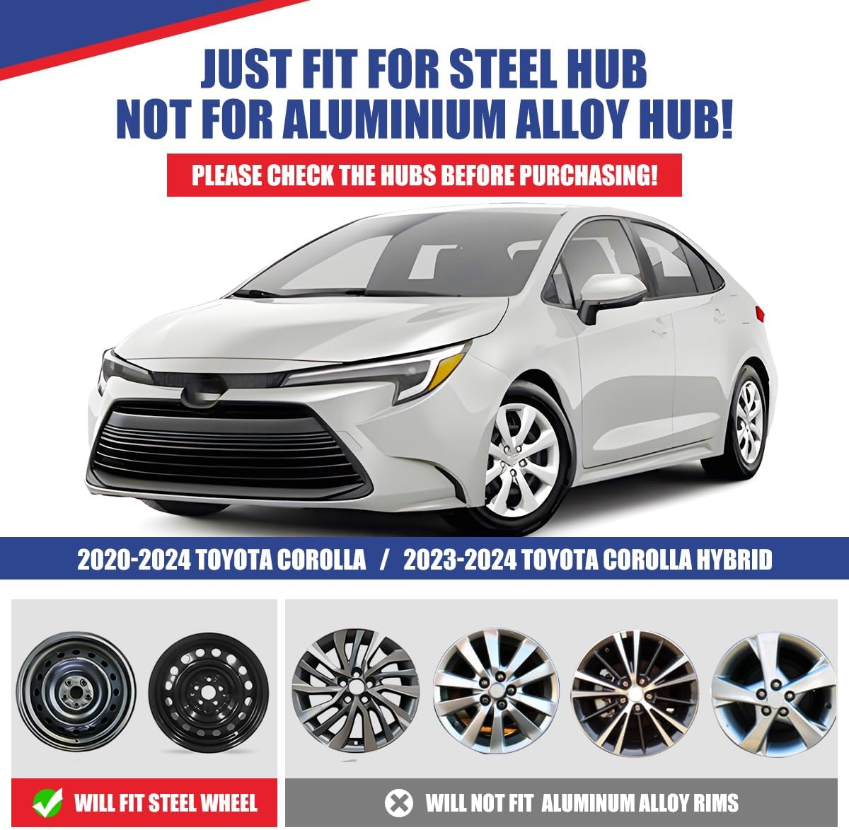 AUTOWIKI is a Professional Automotive Parts Manufacturer. We're committed to new technology and new product development, and introducing new automotive parts to the market continuously. We aim to provide our customers with high-quality products and let them discover more possibilities about their cars and have more fun in the process.๐ท๐ทFeatureโ 100 % Brand new in box. Unused, unopened, undamaged item in its original packaging.โ Directly replacementโ Adds a stylish look to your Corolla & Matrixโ Made of High Quality OEM Grade PP Plasticโ Snap on style installation, no modification is needed๐ท๐ทSpecificationType: 16 inch Hubcaps compatible for 2009-2014 Toyota Matrix, 2009-2024 CorollaNumber in Pack: Set of 4Color: Black LacquerMaterial: High-quality PPInstallation Type: Snap-OnOEM NO.: Steel Wheel: 42611-02A00,42611-12D41; Wheel Cover: 42602-02540๐ท๐ทFitmentโ Compatible for 2009-2024 Toyota Corolla 16" Steel Wheelโ Compatible for 2023-2024 Toyota Corolla Hybrid 16" Steel Wheelโ Compatible for 2009-2014 Toyota Matrix 16" Steel Wheelโ Not for Aluminium Alloy Hubs or other size wheels๐ท๐ทPackage included4 x 16 inch Wheel Covers Hubcaps๐ท๐ทNoteโข Please make sure this is the right size/product for your vehicles before purchasing it. Measure by checking the number after the "R" on your tires.โข To Avoid any problem, please make sure that all hubcaps are installed properly to the wheel's rim edge. Test it before driving on the road.โข AUTOWIKI offers 30-day returns and a 12-month warranty. Once there is any quality problem with the product, please contact us immediately to solve the problem for you.