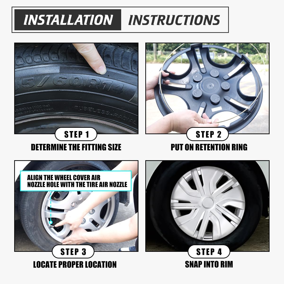 • šŸš—[Easy Snap-On Installation]: Wheel covers designed with quick-snap retention clips for tool-free installation, these hubcaps securely attach to your factory wheels in seconds without special tools