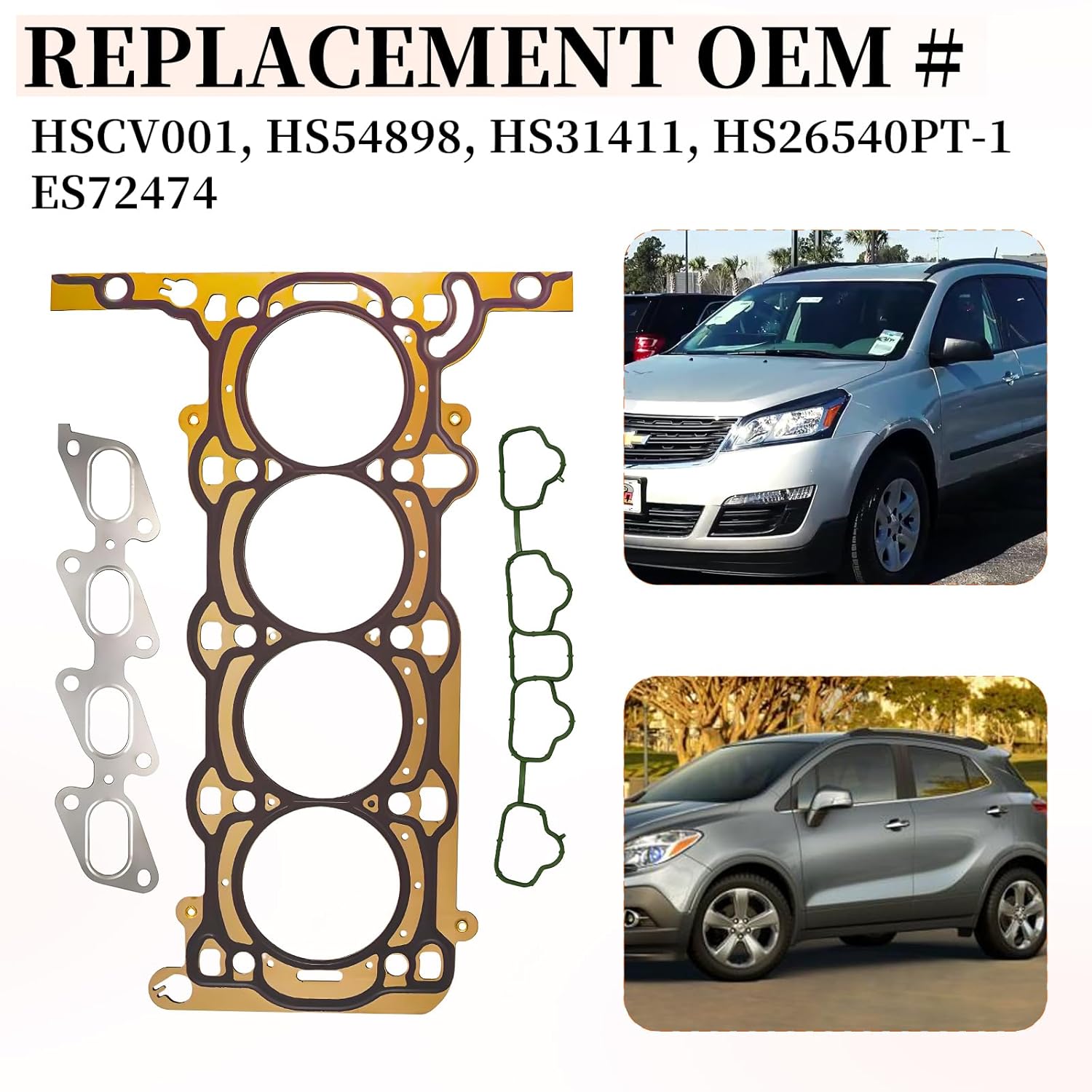 YIFUOK Cylinder Engine Full Head Gasket Set with Head Bolt Kit for Chevrolet Trax/Sonic/Cruze/Cruze Limited 2011-2016, for Buick Encore 2013-2016 1.4L Replacement Part Number: HSCV001, HS54898, HS31411, HS26540PT-1, ES72474, Check the compatibility in "amazoncongirmedfit" with Year + Model Vehicle Compatibility: Fit for Buick Encore 2013-2016 1.4L; Fit for Chevrolet Cruze 2011-2015 1.4L; Fit for Chevrolet Cruze Limited 2016 1.4L; Fit for Chevrolet Sonic 2012-2016 1.4L; Fit for Chevrolet Trax 2013-2016 1.4L Turbo DOHC 16-Valve Engine Items Included:Multiple Layers Steel (MLS) Head GasketValve Cover GasketValve Stem SealsIntake Manifold GasketExhaust Manifold GasketFront Camshaft SealO-ringsOther Small GasketsRTV Silicone12 Cylinder Head Bolts