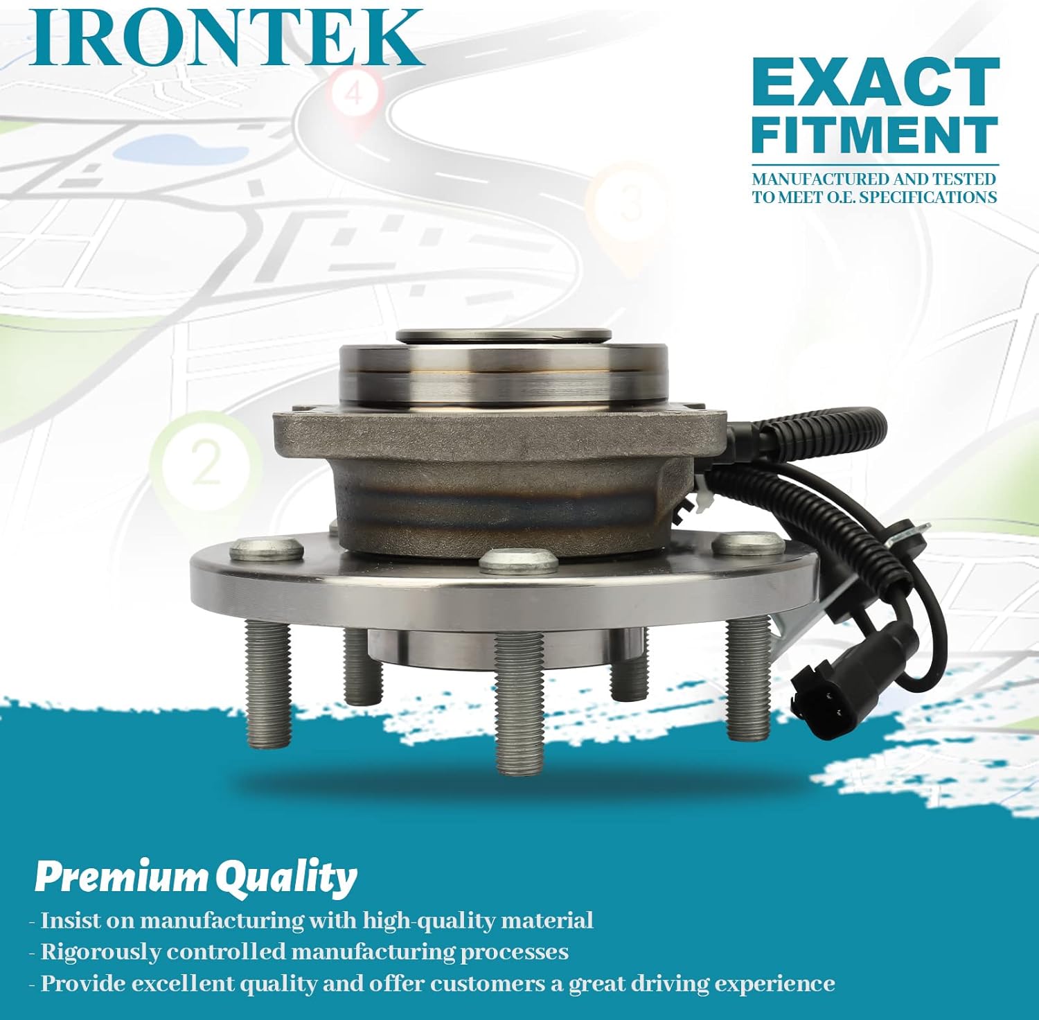 About Us:IRONTEK is a fast-growing auto parts distributor in the US that offers a wide range of replacement auto parts.We strive for excellence and believe high quality and a great reputation are crucial to our business.All of the auto-parts we offer are manufactured using the latest international equipment and state-of-the-art technology to ensure you get the best.The importance of wheel bearings:Hub assembly is a critical component, it allows the wheels to spin freely and at the desired speed.They’re also responsible for keeping the wheels attached to the vehicle.As the bearings begin to wear out or become damaged, they impact the wheel's ability to spin smoothly, freely, and securely.When this happens your vehicle will become shaky, and your wheels will not be secure.Part Fitment Information:2008-2016 FOR Chrysler Town & Country Front 2008-2017 FOR Dodge Grand Caravan Front 2009-2012 FOR Volkswagen Routan Front 2012-2014 FOR Ram C/V