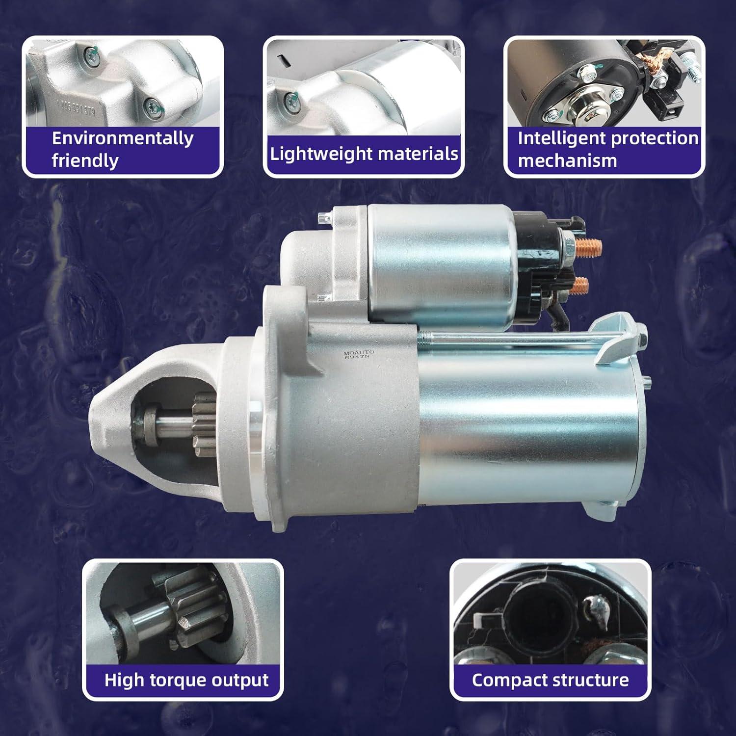 Package Includes: 1 x Starter Motor Product Specifications: Rotation:CW Teeth:9 Tooth Pinion Volts:12 Volts Power Rating:1.4 KW Compatible with Buick: 2010-2016 LaCrosse 2.4L 2011-2013 Regal 2.0L 2011-2017 Regal 2.4L 2013-2016 Verano 2.0L 2012-2017 Verano 2.4L Compatible with Chevrolet: 2008 Malibu 2.2L 2008-2014 Malibu 2.4L 2010-2017 Equinox 2.4L 2012-2015 Captiva Sport 2.4L 2008 Cobalt 2.4L 2008-2010 Cobalt 2.0L 2008-2010 Cobalt 2.2L 2008-2010 HHR 2.0L 2008-2011 HHR 2.2L 2008-2011 HHR 2.4L 2014 Impala 2.4L Compatible with GMC: 2010-2017 Terrain 2.4L Compatible with Pontiac: 2008 G5 2.4L 2008-2010 G5 2.2L 2008-2010 G6 2.4L 2008-2009 Solstice 2.0L 2008-2009 Solstice 2.4L Compatible with Saturn: 2007-2009 Aura 2.4L 2008-2010 Sky 2.0L 2008-2010 Sky 2.4L 2008-2010 Vue 2.4L Compatible with Saab: 2010-2011 9-3X 2.0L 2010-2011 9-3 2.0L Replaces The Following Part Numbers: 6947N, 6947, 12609317, 19257989, 89060407, 8000213