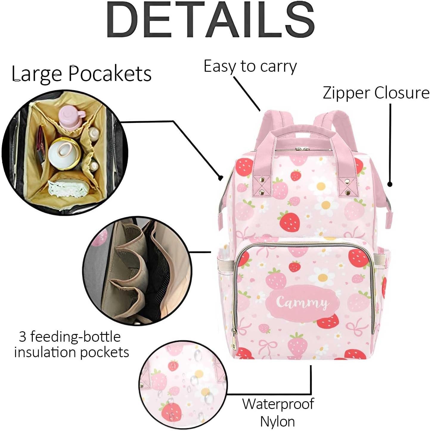 Custom baby bag backpack for your daughter, granddaughter, friend as baby shower gift, birthday gift, mother's day gift. This diaper bag can be easily carried on your wrist, shoulder bag or hang on the stroller. Can act as both a diaper bag or regular backpack, and it is great gift for newborn parent and shower gift. It is best option birthday, mother's day gift.