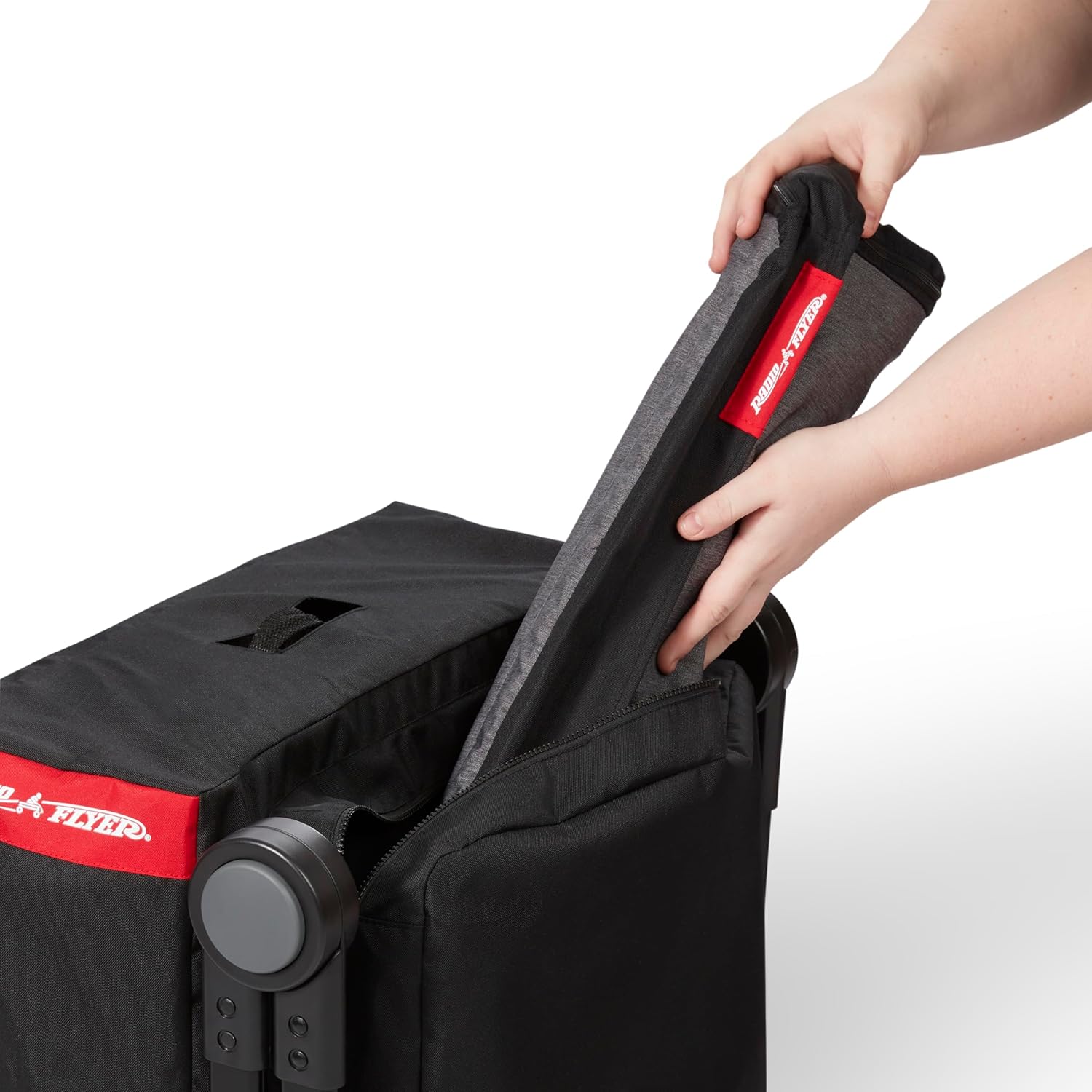 The Radio Flyer Atlas Stroll ’N Wagon Travel Cover offers a simple way to keep your wagon protected when folded for transport or storage. Made with travel in mind, it helps reduce exposure to scuffs and wear while moving between outings, loading into vehicles, or storing your wagon between uses. The cover features sturdy construction intended to withstand regular handling, while integrated comfort grip handles make carrying the folded wagon more manageable. The addition of an integrated organizer storage pocket offers a practical way to separate and store smaller items. Created specifically for Radio Flyer Atlas Stroll ’N Wagon models. As a Certified B Corp, Radio Flyer is proud to create products that spark imagination while helping preserve the planet for future generations.