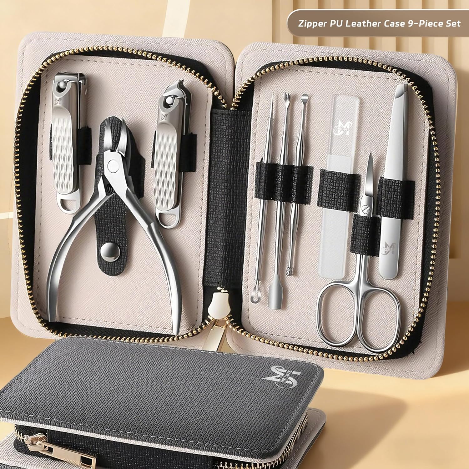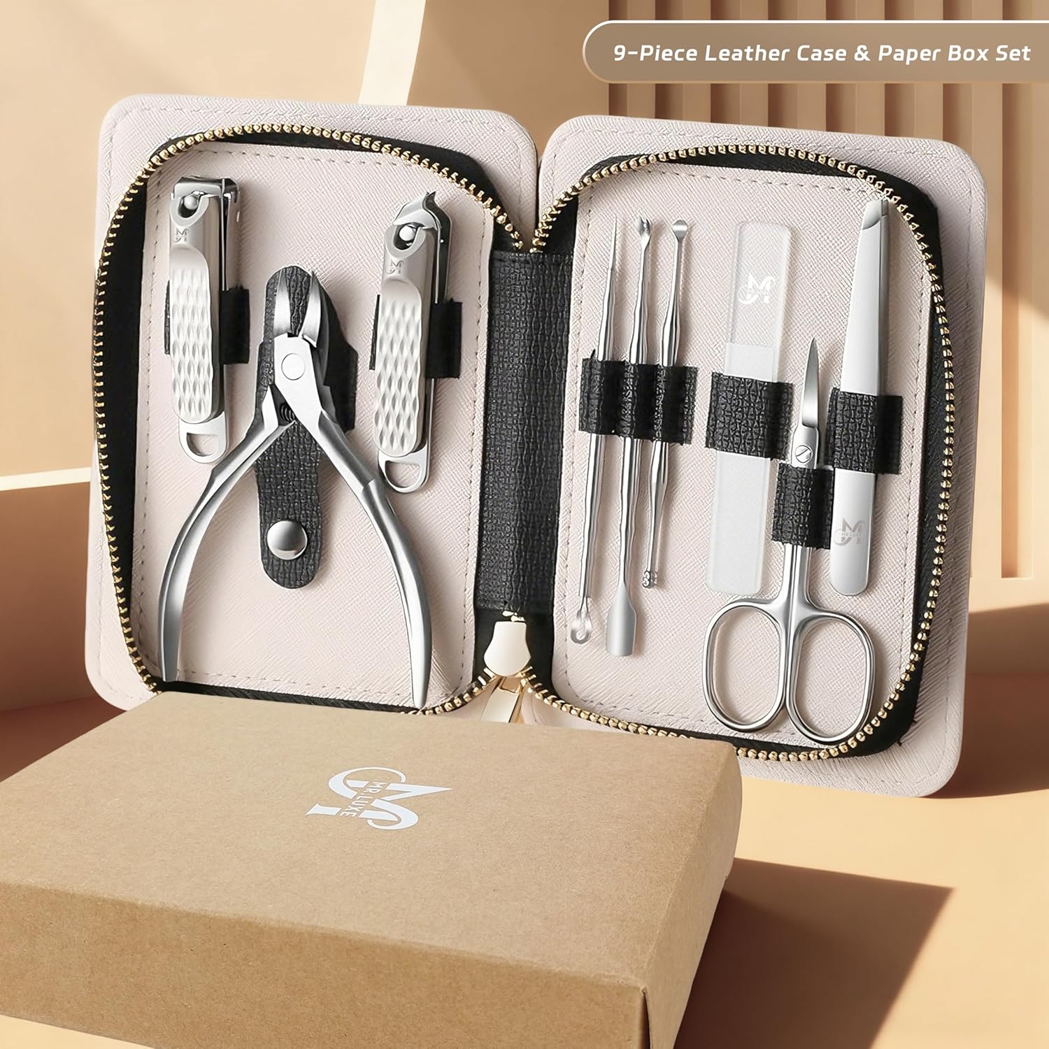 Experience premium nail care anywhere with the MR.LUXE 9-in-1 Manicure and Pedicure Set — a perfect blend of elegance, functionality, and long-lasting quality. Engineered for individuals who appreciate beauty, hygiene, and precision, this complete grooming kit features high-grade stainless steel tools designed to trim, shape, clean, and maintain nails with salon-level accuracy. Each piece, from the sharp nail clippers to the double-ended cuticle pusher and fine-tip tweezers, is crafted for durability and effortless performance. Whether you’re touching up your nails before an event or maintaining your weekly routine, these tools ensure smooth, clean results every time. The set is housed in a luxurious textured leather travel case with a compact, lightweight design that keeps your essentials neatly organized and protected. Its elegant stitching and smooth zipper closure add a refined touch, making it ideal for use at home, at work, or during travel. Thoughtfully designed and beautifully presented, the MR.LUXE Manicure and Pedicure Set makes an excellent gift for women, travelers, professionals, and anyone who values personal grooming. Enjoy clean, polished, and perfectly maintained nails anytime, anywhere — with the confidence and style that only MR.LUXE can provide.