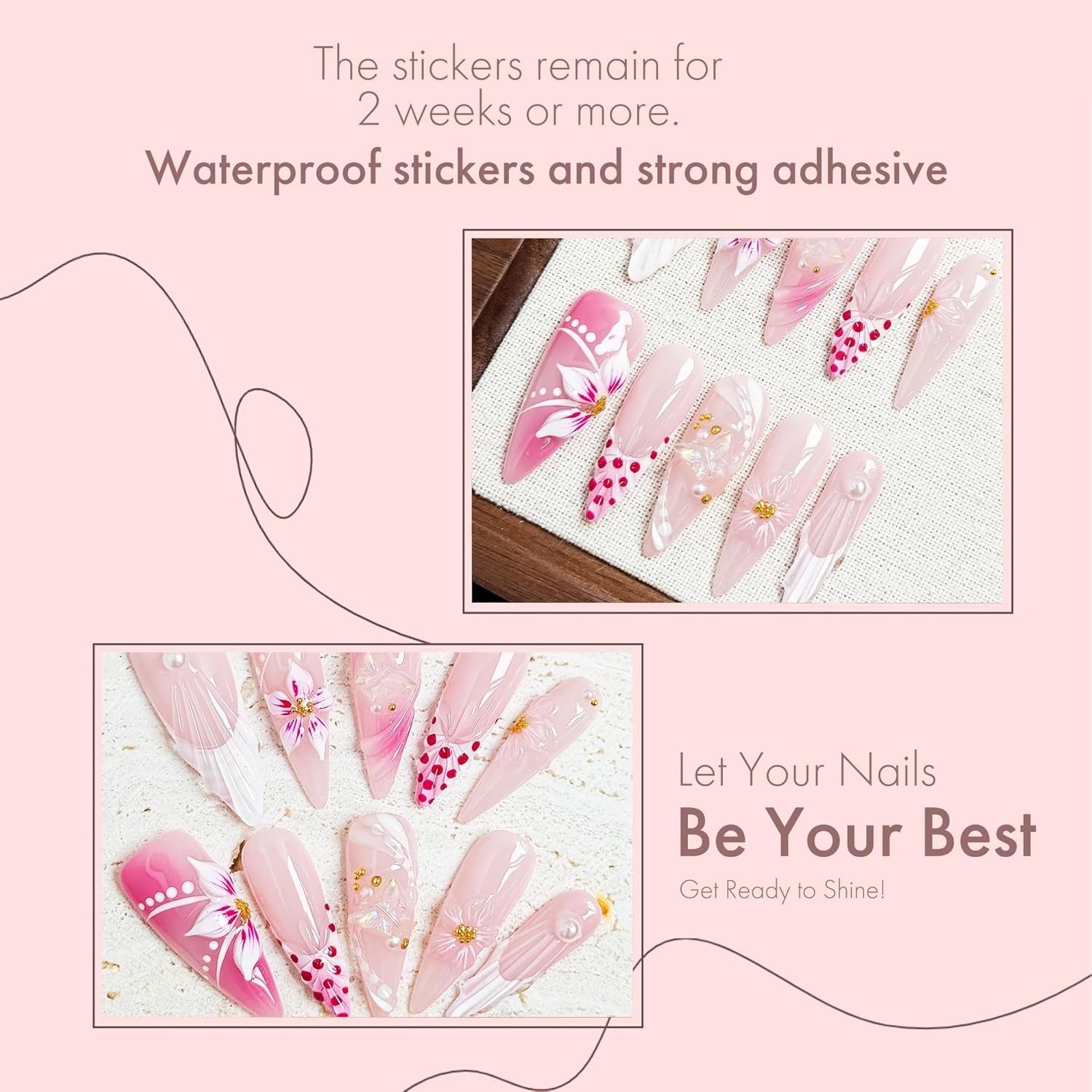 Discover “Petal Whisper” 10-piece press-on nail set. Featuring pink floral gradients, 3D flowers, and pearl-gold accents, these acrylic/UV gel nails bring romantic, soft-glam Korean style to your manicure. Perfect for weddings, events, or daily wear — get salon-worthy nails in minutes.