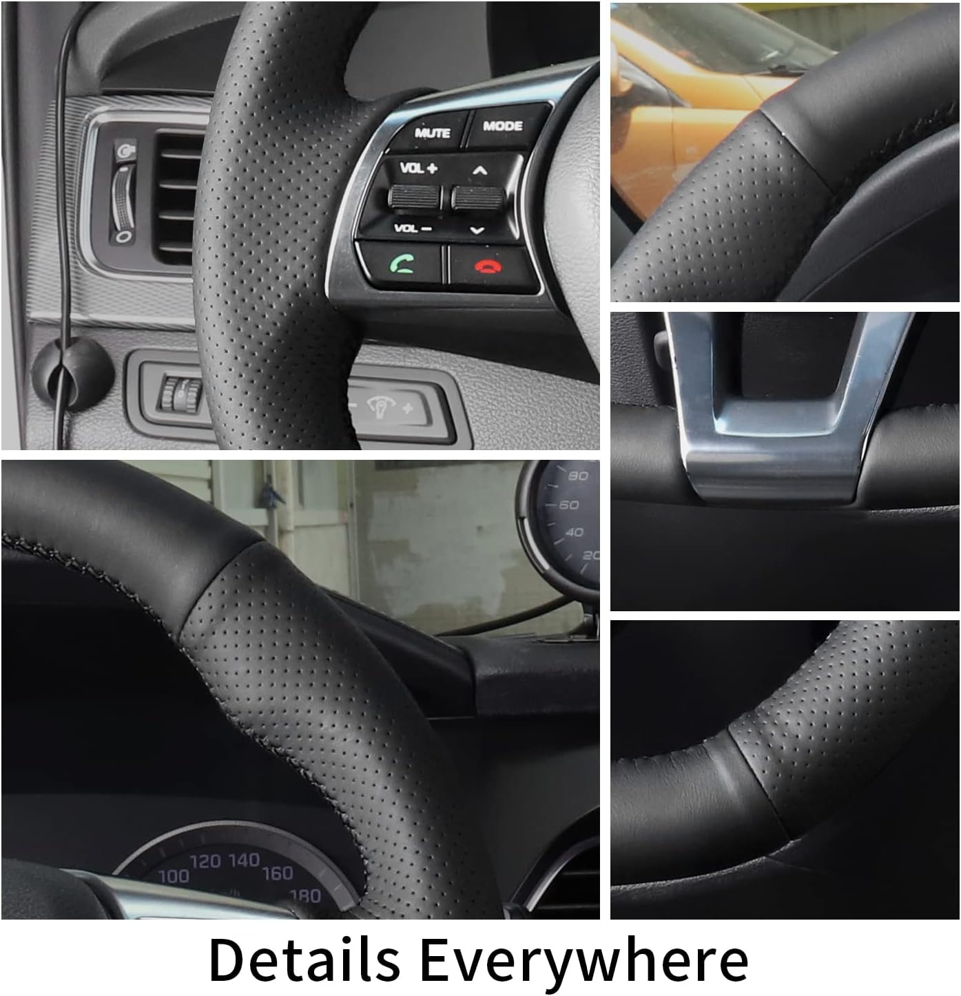 Yeolpise Hand Sewn Steering Wheel Cover Non-Slip Breathable Microfiber Leather Steering Wheel Cover wrap Car Interior Accessories,make every detail of the steering wheel be perfectly wrapped, just like the original factory. Features: 1. Perfectly fit the OEM steering wheel,make every detail of the steering wheel be perfectly wrapped. 2. Made of high-quality microfiber leather, non-slip, breathable and comfortable grip. Give your old steering wheel a new look. 3. Hand Sewing,It takes about 2-3 hours to sew by hand. There is no need to remove the steering wheel, stitching is done directly on the original steering wheel. Applicable Models: Replacement for Hyundai 2015 Sonata. Operation Steps: 1. Put on the steering wheel cover. Make sure the location is correct. In order to ensure that the stitching at the back is not crooked, the position where the leather meets is exactly at the center seam on the original steering wheel. 2. Affix double-sided tape to fix it. You can stick double-sided tape on the stitching on the inside of the leather. Be careful not to stick the double-sided tape on the edge, otherwise the edge may not fit into the gap. 3. Plug the edge. After positioning and sticking the double-sided tape, use the edge plug device to plug the exposed edge into the gap of the steering wheel, and pay attention to use different angles to plug the edge. 4. Hand stitching. Select a line that is 3-5 times the length of the sewing area, and then you can choose a starting point to stitch.