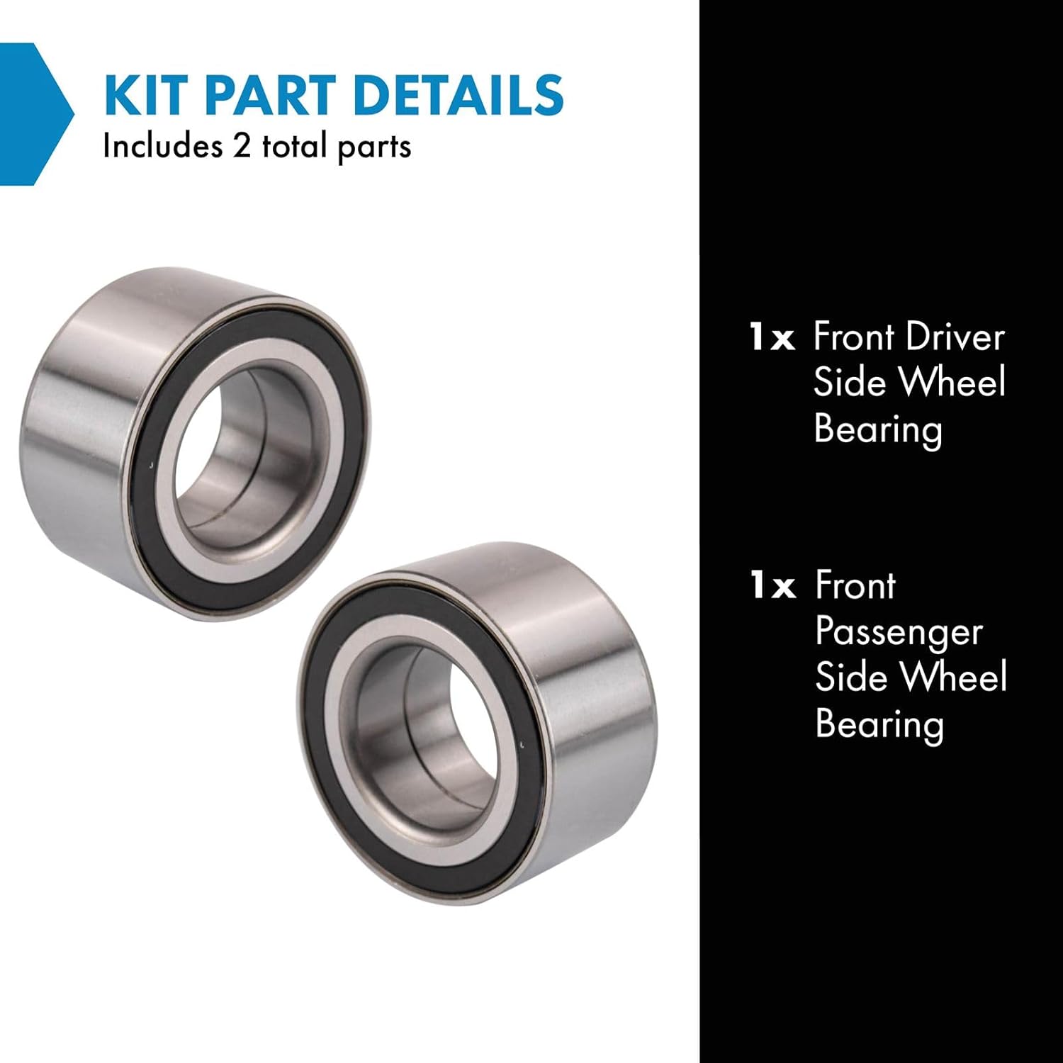| Included Components | 1 Front Driver Side Wheel Bearing, 1 Front Passenger Side Wheel Bearing |
