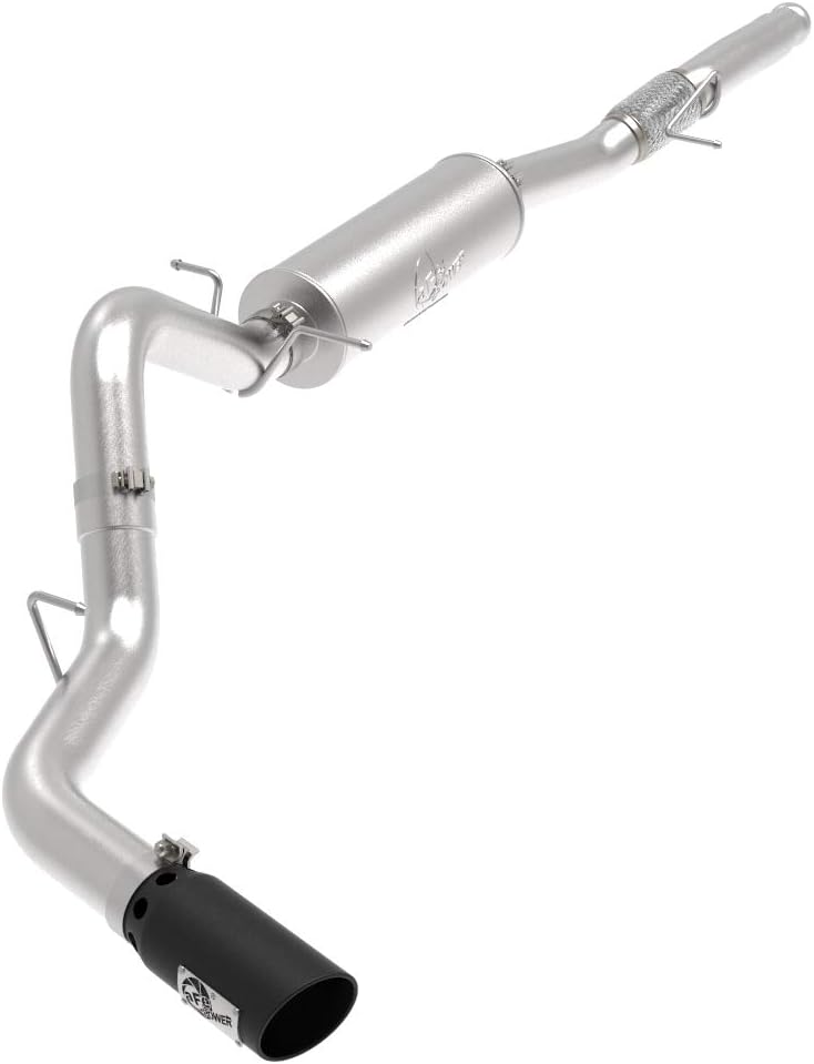 4" 409 Stainless Steel Construction: This cat-back exhaust system is constructed of 4" mandrel-bent 409 stainless steel tubing for maximum strength and durability. High-Flow 409 Stainless Steel Muffler: This system features a high-flow 409 stainless steel muffler, producing a deep sound. 5" Diameter Polished Intercooled Exhaust Tip: Finishing off this exhaust system is a 5" diameter polished 409 stainless steel intercooled clamp-on exhaust tip. The tip features an aFe POWER logo plate riveted on for a unique style. Installation: Utilizing factory style hangers this system is a direct bolt-on system, which requires no cutting or modifications for a hassle-free installation. Interlock Flex Pipe: This cat-back exhaust system uses a heavy duty flex pipe with an internal interlock liner for added strength and durability. Computer-Aided Design: Utilizing state-of-the-art computer-aided design technology, this exhaust system is designed for custom, high tolerance factory fitment. MIG-Welded: 100% MIG-Welded for race-proven strength and durability. This item fits: Crew Cab/Short Bed ( 69. 3" Box), 143. 5" Wheelbase, Crew Cab/Long Bed (78. 8" Box), 143. 5" Wheelbase, Extended Cab/Long Bed (78. 8" Box) 153" Wheelbase Emissions Disclaimer: This product does not require a CARB EO#. aFe POWER exhaust systems are engineered and manufactured in our Corona, California facility.