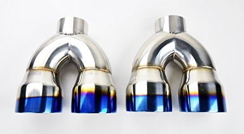 Two Dual Exhaust Tips 100% New, Never used or installed Individual Tip OD: 4" Total Width of both tips: 8 3/4" Depth: 9" Inlet: 2.5"