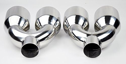 Two Dual Exhaust Tips 100% New, Never used or installed Individual Tip OD: 4" Total Width of both tips: 8 3/4" Depth: 9" Inlet: 2.5"